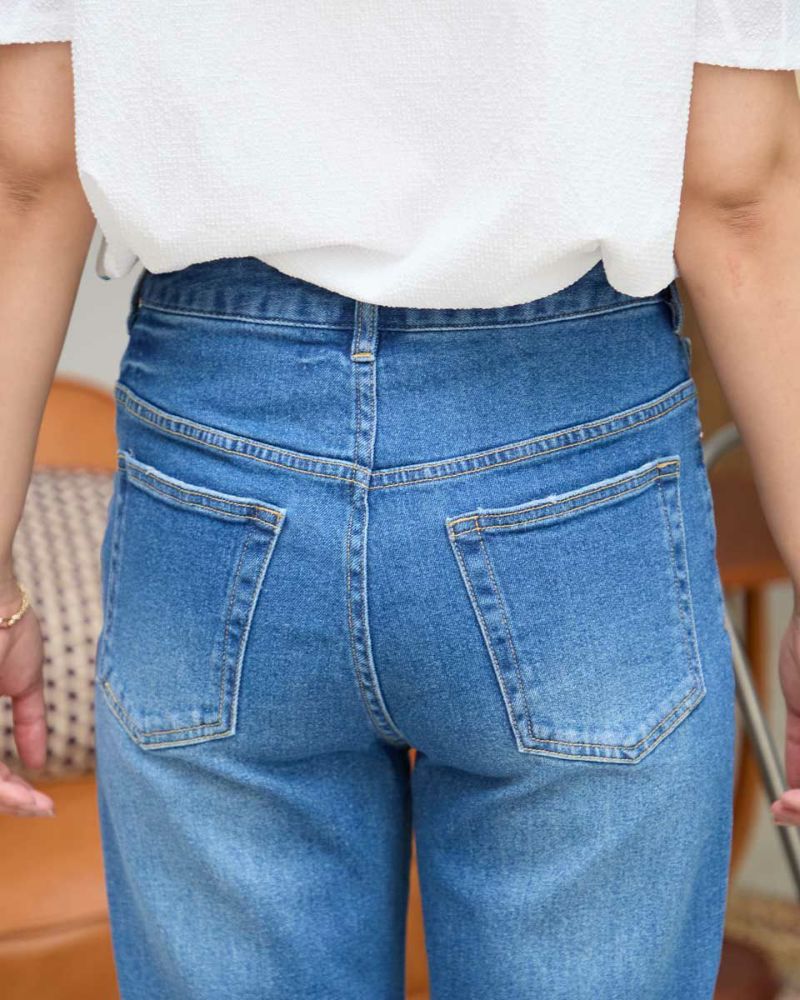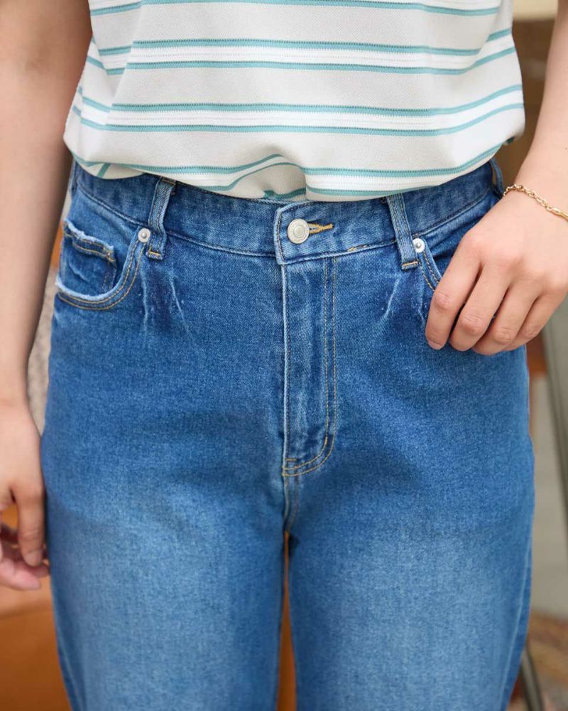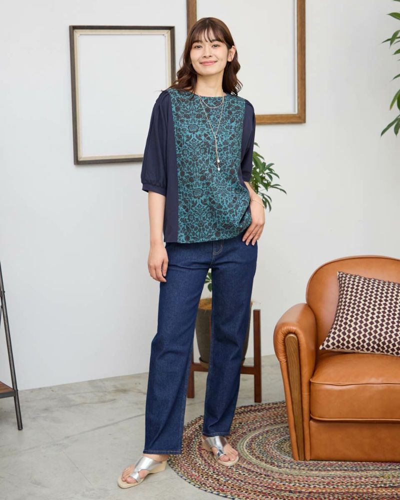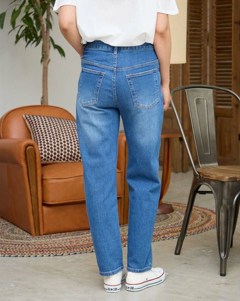 今期は程よく厚みを感じる11.5オンスのデニム地をセレクト。厚みが増した事で今の気分にフィットする1本に仕上がりました。ウエストからヒップはすっきり、少し細みなストレートの筒部分が足を真っすぐに見せ女性らしくヘルシーにお召しいただけます。ポリウレタンの効果でヨコ方向に伸縮するため強張り無く、立つ、座るの動作もスムーズ。ワンウォッシュで仕上げたネイビーカラーは砕け過ぎず清潔感もしっかりキープ。ももやヒップの色落ち、擦れなどダメージ加工を施したブルーカラーも洒落た雰囲気が出ます。仕上げにリップやジュエリーで光をプラスすると、洗練されるのでおすすめです。