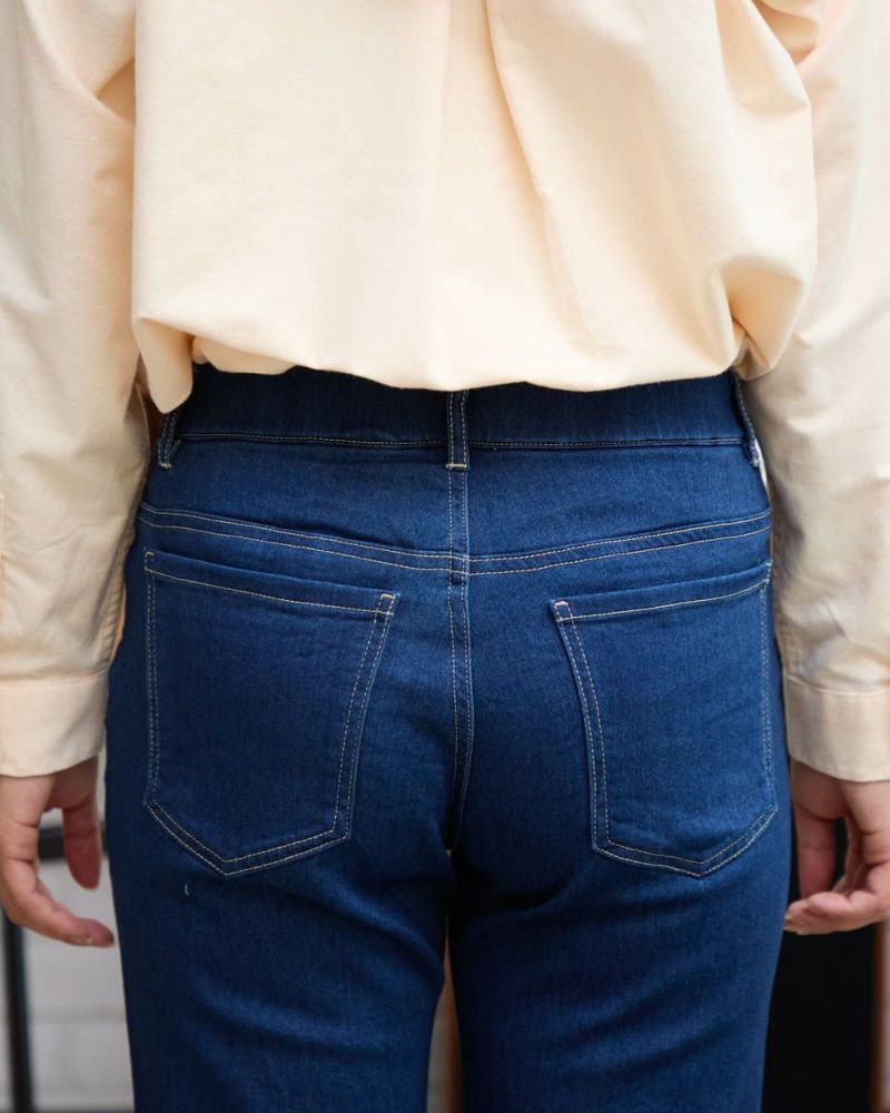 綿・レーヨン・ポリエステル・ポリウレタンのデニムを使用したブーツカットシルエットのパンツです。横方向に伸び、裏側をパウダーの様に柔らかく微起毛をした肌触りの良い素材です。カラーはネイビーの1色展開です。467RC703テーパードパンツと同素材です。 モデル身長: 168 cm 着用サイズ: 61 サイズ Golden Bear QUEEN SIZE(Ladies' 大きいサイズ ) ボトムス (Ladies') 同デザイン通常サイズはこちら