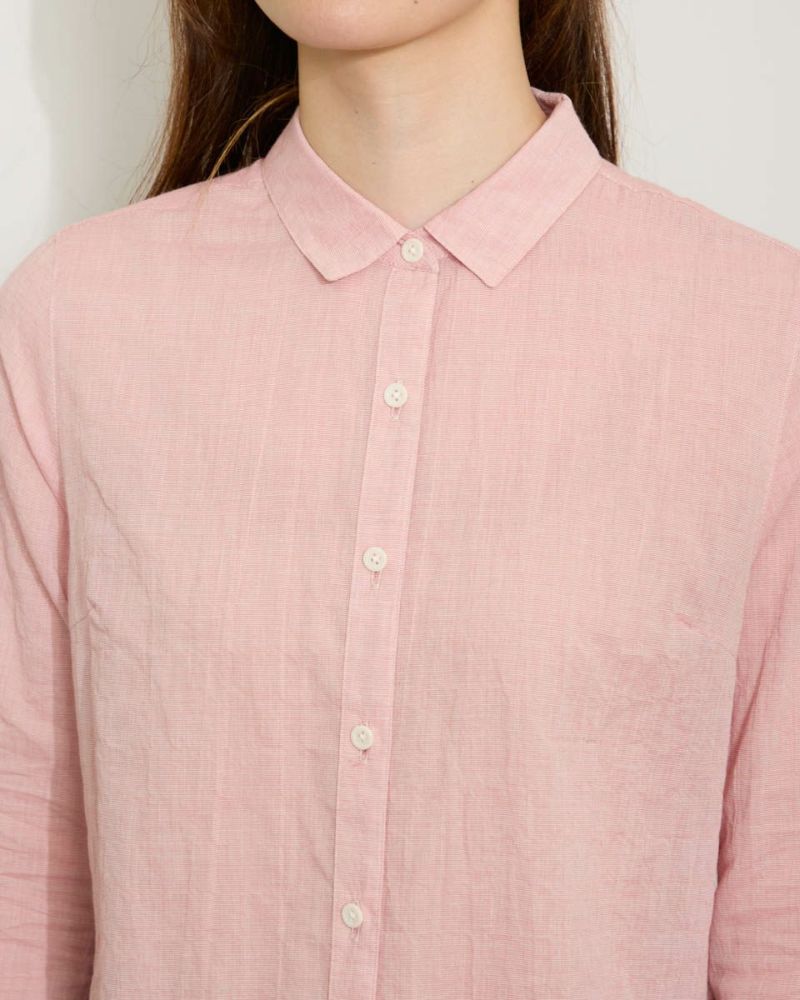 綺麗な色に一目惚れでした。後ろ見頃のピンタックは、目立たないけどオシャレです。薄手なので羽織ものとしても活躍しそう。嵩張らず、シワになりにくいので、夏場は冷房対策として持ち歩きにも重宝しそうです。