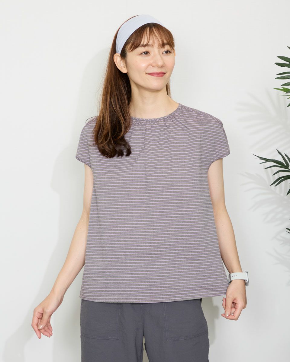 落ち着いたボーダーの配色が派手すぎずちょうどいいバランスのブラウスです。表情豊かな凹凸のある表面感が魅力です。少し立体的なシルエットで体のラインを拾わず着用できます。スタイリング次第でオンオフ問わず活躍してくれるアイテムです。 モデル身長: 171 cm 着用サイズ: M サイズ Golden Bear WOMEN ブラウス (WOMEN) 【着用アイテム】467QA601 カーディガン 467QA711 セミワイドパンツ 468QB751 ベイカー風イージーパンツ