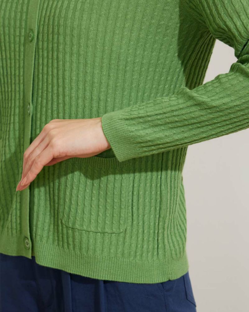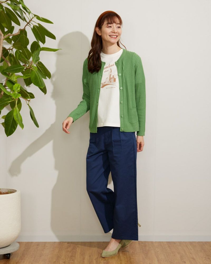 レーヨン混の滑らかな肌触りのいい糸を使用したケーブルカーディガンです。カジュアルな中にも上品さのある1枚。華やいだカラーでコーディネートのアクセントに。 モデル身長: 171 cm 着用サイズ: M サイズ Golden Bear WOMEN ニット (WOMEN) 【着用アイテム】467Q3410 半袖プリントTシャツ 467Q3702 折山プレスカーゴパンツ 467Q3710 ストレートパンツ
