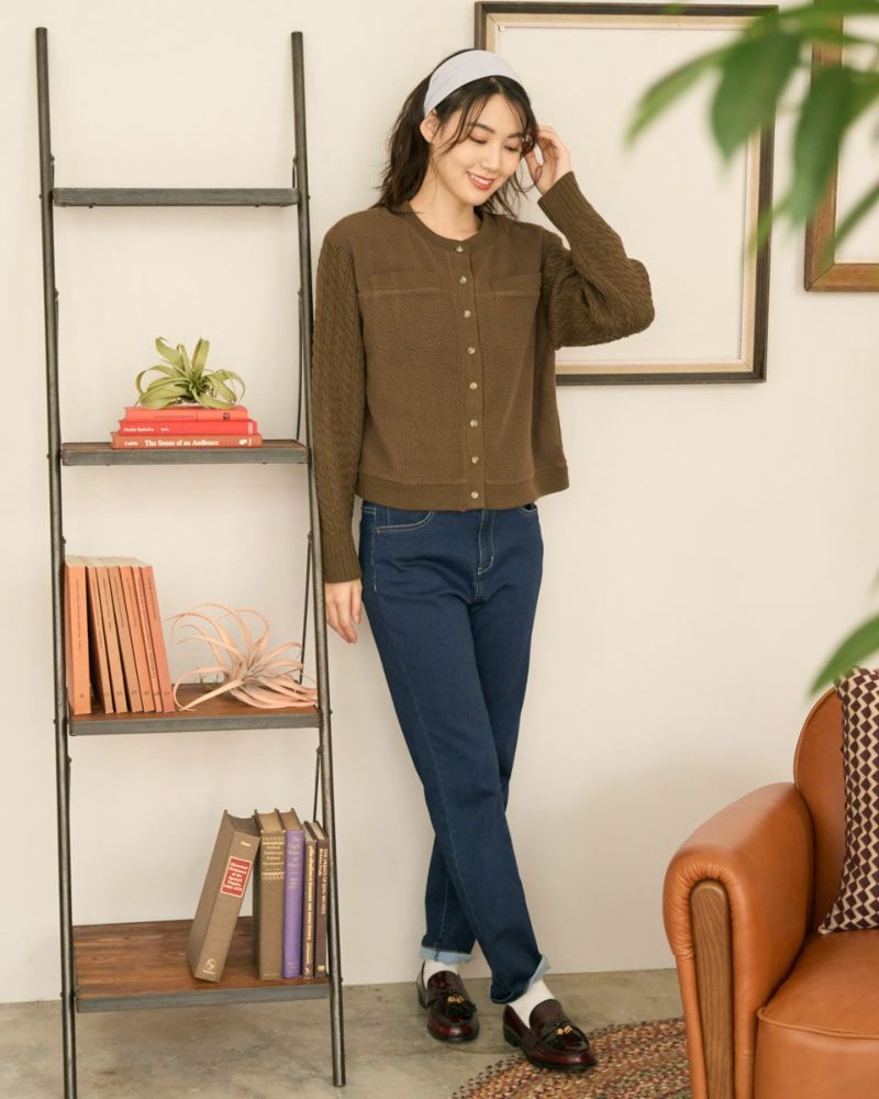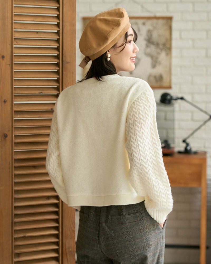 フリースとニットを組み合わせてデザインしたカーディガン。異素材コンビのコントラストが楽しいアイテムです。ショート丈なのでトレンド感も出て、デニムやスカートとの相性も◎ モデル身長: 166 cm 着用サイズ: M サイズ Golden Bear Ladies' カットソー (Ladies') 【着用アイテム】467QD702 折山プレステーパードパンツ