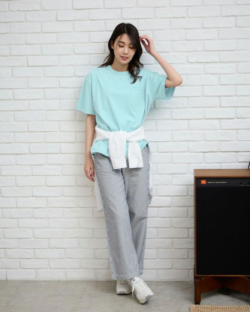 裾に金熊が刺繍されたGolden Bearの定番無地Tシャツです。 接触冷感と吸水速乾性に優れているので猛暑日でも快適に着ていただけます。表側が綿、裏側がポリエステルという特殊な編地はなめらかな肌触りが特長。ゆったりと着用できるワイドシルエットにドロップショルダーの五分袖で、リラックス感のある着こなしが楽しめます。 一枚で着ると透け感が気になるアイボリーは、透けにくいよう遮へい率90%と工夫を重ねていますが、気になる方はインナーの重ね着をおすすめします。 Tシャツを洗濯したら襟がヨレてしまった…という経験、ありますよね? Golden Bearの無地Tシャツは、強度のあるフライス素材で身生地を挟み込むバインダー仕様を採用。洗濯を繰り返しても襟がヨレにくく長くご愛用いただけます。 発売以来、累計12万枚以上を販売している自信作です。 (22/3月~24/12月 メンズ・ウィメンズ・キッズ・大きいサイズ累計販売枚数) モデル身長: 166 cm 着用サイズ: M サイズ Golden Bear Ladies' カットソー (Ladies') 同デザイン大きい(3L,4Lサイズ)はこちら メンズサイズはこちら キッズサイズはこちら 家族コーディネートアイテムはこちら 【着用アイテム】467R3730 ハイウェストストレートパンツ 467R4702 テーパードパンツ 468R3751 スカート 468R3760 ストレートパンツ 467R5004 ニットジャカードミニバッグ
