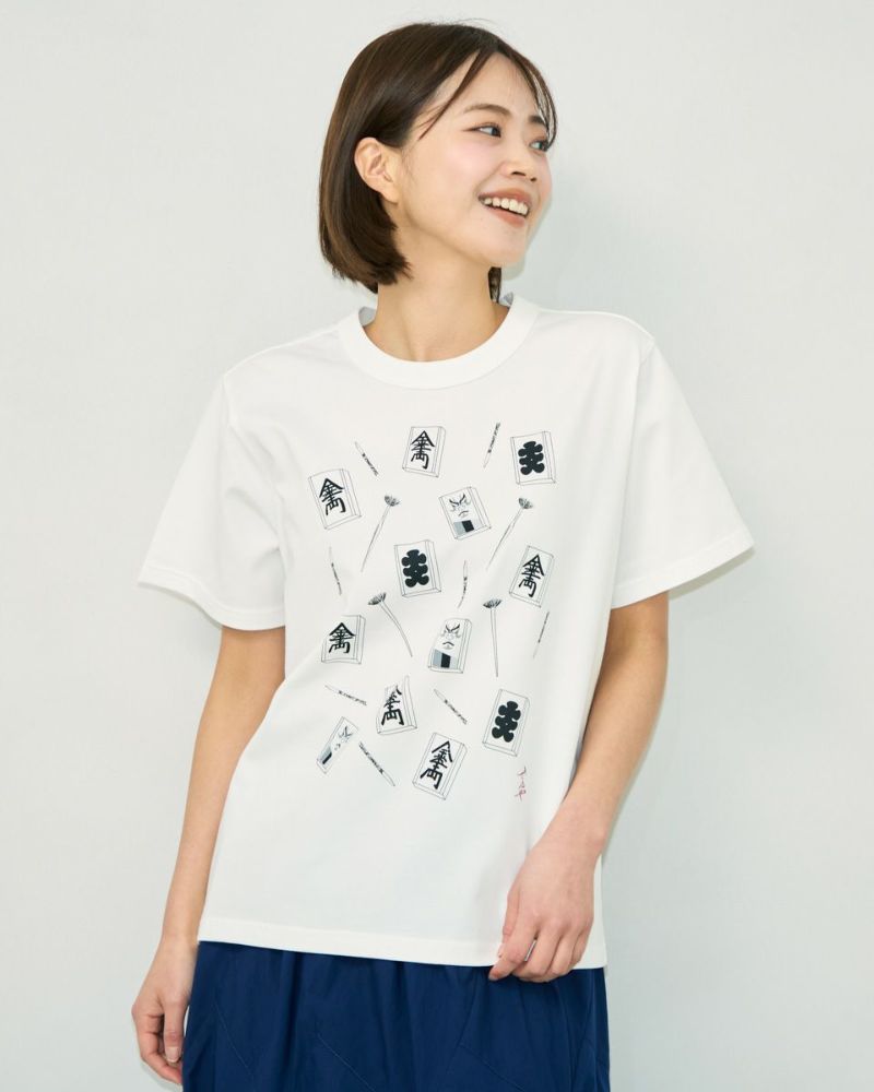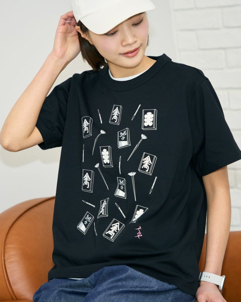 楊枝専門店のさるやさんとコラボレーションしたTシャツです。今ではもう販売はされていない房楊枝や、さるやさんを象徴する黒文字楊枝をプリントしました。素材は、接触冷感・透け防止・吸水速乾性に優れた滑らかな肌触りのプレーティング天竺。襟ぐりは強度のあるフライスを使用し、バインダー始末にすることでヨレにくくしています。