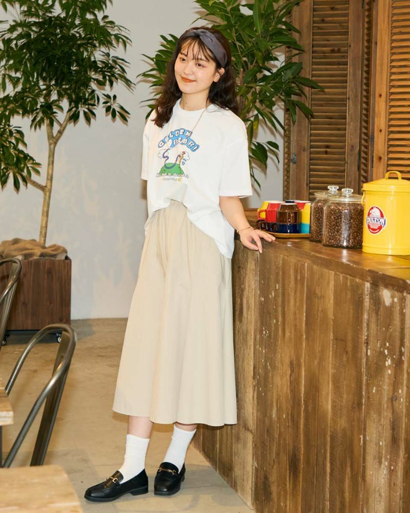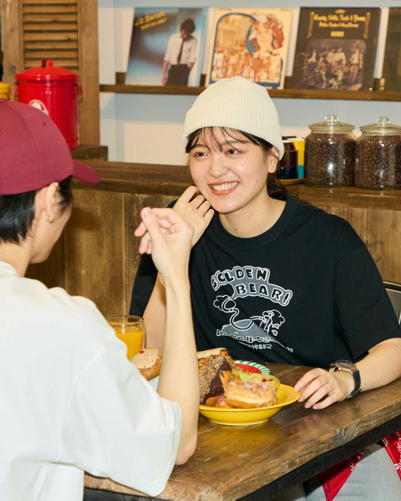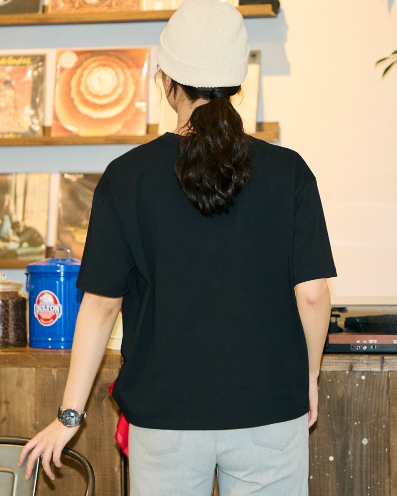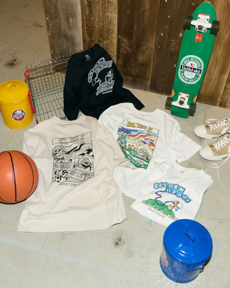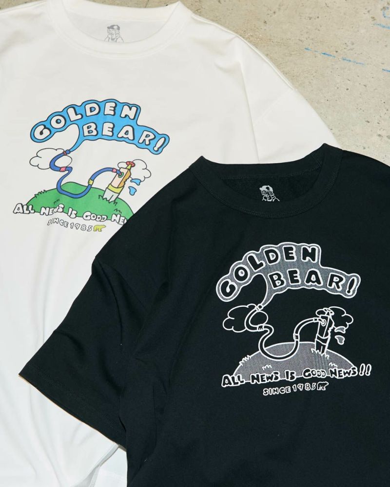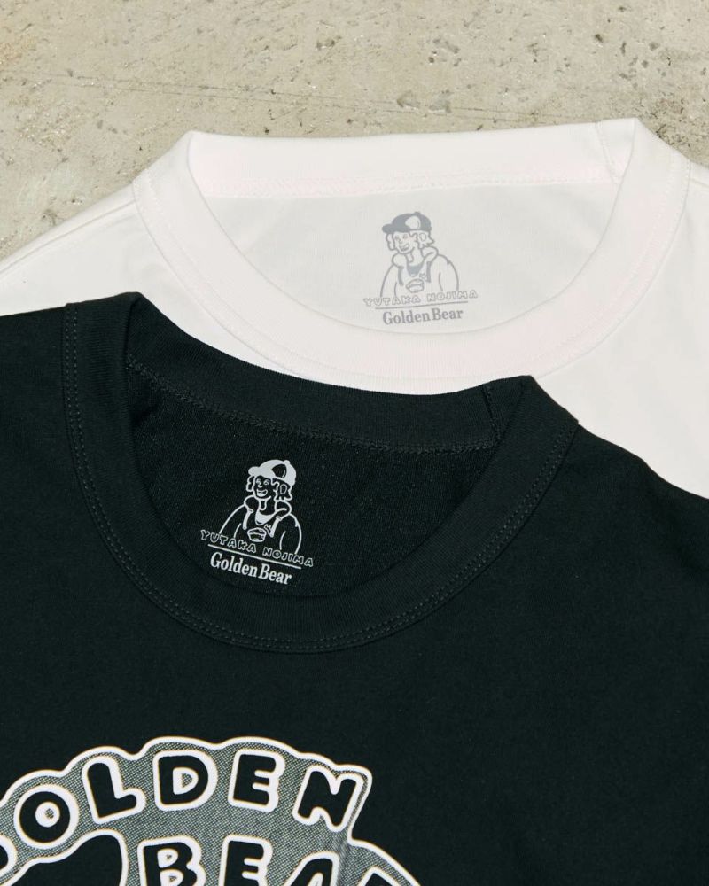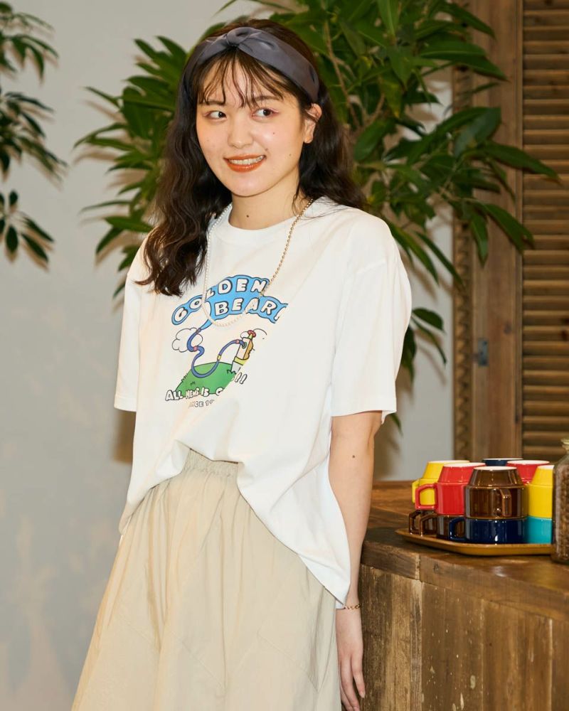 【Collaboration with YUTAKA NOJIMA】 Golden Bearの「ブランドとアイコンである金熊を、もっと多くの方に知ってもらいたい」——そんな想いから、イラストレーターとの特別なコラボレーションが実現。 跳ねるホースから「Golden Bear」のロゴが噴き出す、夏にピッタリな爽やかなモチーフを描いていただきました。 素材は接触冷感・透け防止・吸水速乾性に優れたプレーティング天竺生地。 襟はバインダー仕様にすることで100回洗濯してもよれにくくなっています。 ややゆとりを持たせたシルエットでざっくりとラフに着ることができるサイズ感に仕上げました。 モデル身長: 170 cm 着用サイズ: M サイズ Golden Bear Ladies' カットソー (Ladies') バックプリントTシャツ / YUTAKA NOJIMA コラボレーションはこちら メンズサイズはこちら 家族コーディネートアイテムはこちら