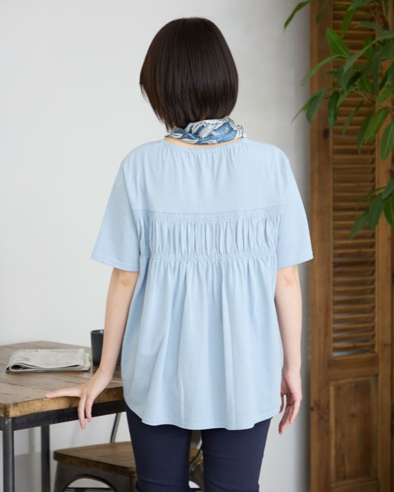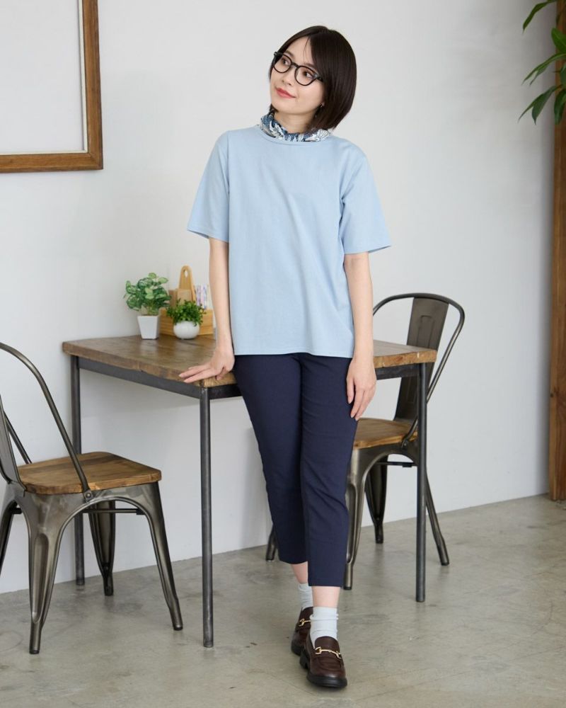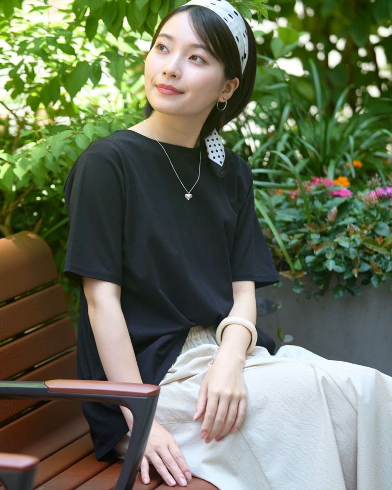 接触冷感、UVカットの機能が嬉しいトリコット素材のTシャツです。シワになりにくく、洗濯後に型崩れしにくい素材でサラッとした着心地が楽しめます。前身はシンプルですが、後身は分量があるのがポイントのデザインTシャツです。 モデル身長: 162 cm 着用サイズ: M サイズ Golden Bear Ladies' カットソー (Ladies') 【着用アイテム】467R4703 スカート 467R7702 ガウチョパンツ 467R7703 クロップドパンツ