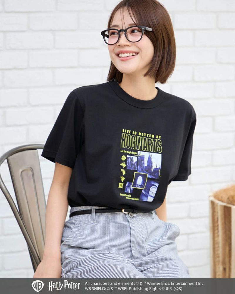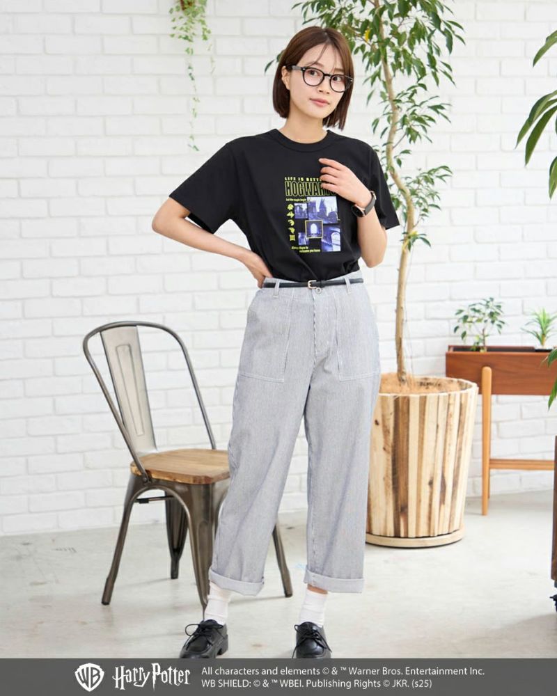 アイボリーのTシャツには、ホグワーツ特急や、9と3/4番線のグラフィックをプリントし、レトロポップな雰囲気に。