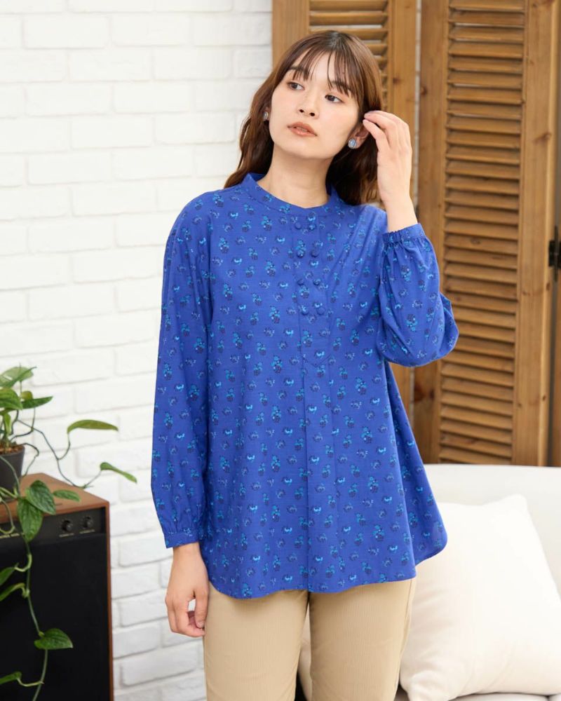 小花柄プリントブラウスです。前たてに並んだ釦がアクセント。デニムやワイドパンツと合わせれば甘さを抑えた大人スタイルで着用できます。 モデル身長: 168 cm 着用サイズ: M サイズ Golden Bear Ladies' ブラウス (Ladies') 【着用アイテム】467R8712 ストレートパンツ