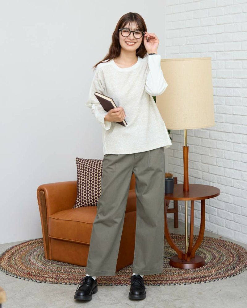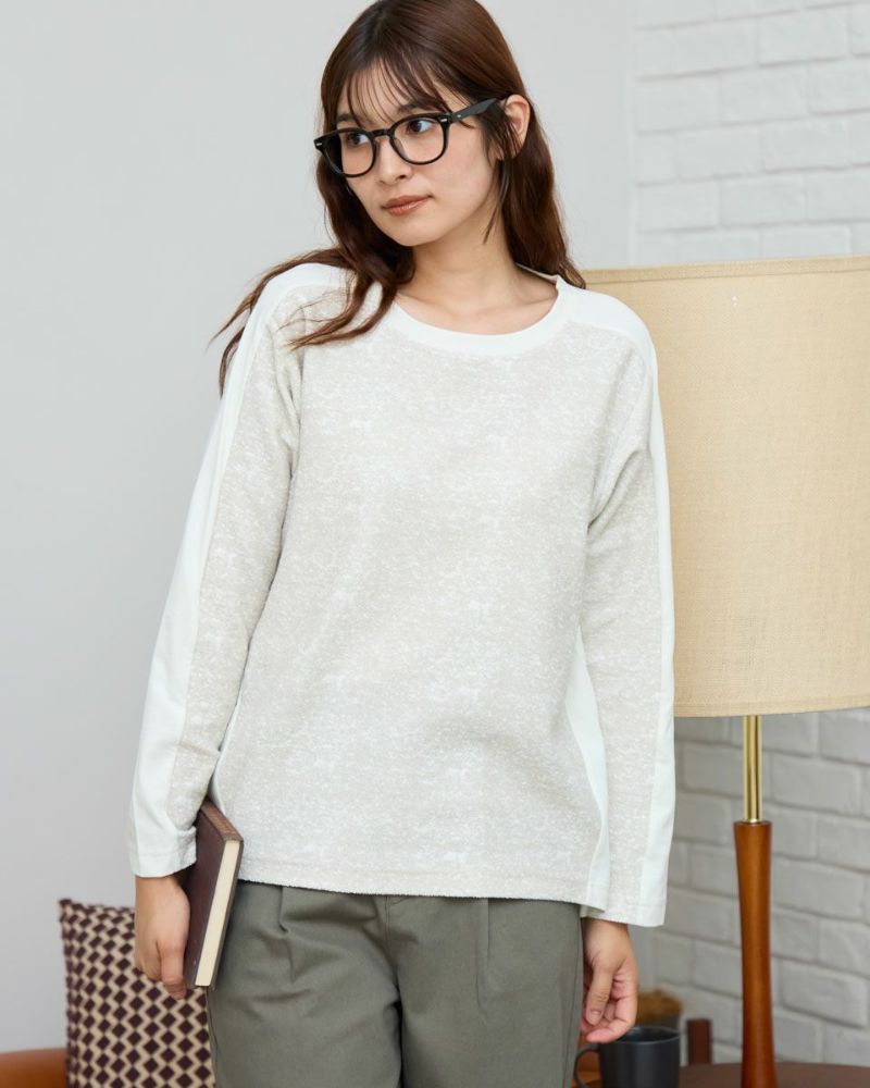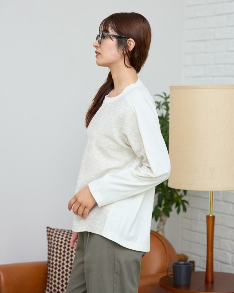 柔らかなパイル素材を使った切り替えデザインの長袖Tシャツ。夏の暑さがやわらぎ始める季節にぴったりの軽やかで快適な着心地です。表情のある素材感で、デイリーコーデにさっと取り入れやすい一枚です。 モデル身長: 168 cm 着用サイズ: M サイズ Golden Bear Ladies' カットソー (Ladies') 【着用アイテム】467R8710 ストレートチノパンツ