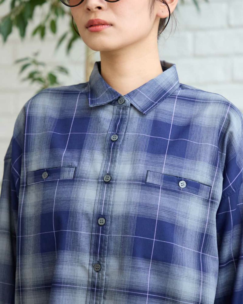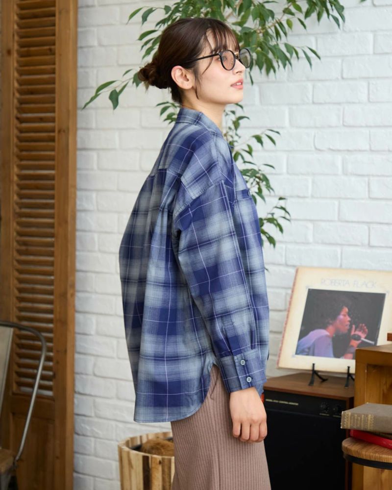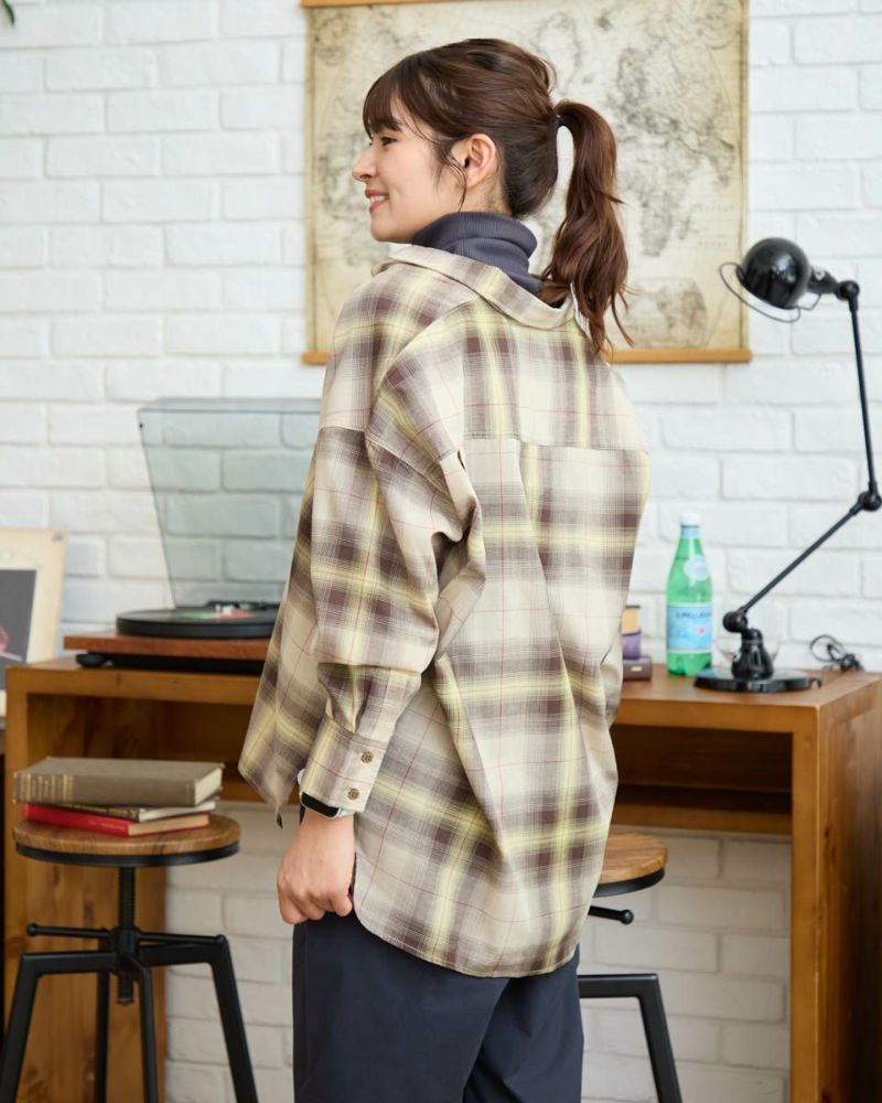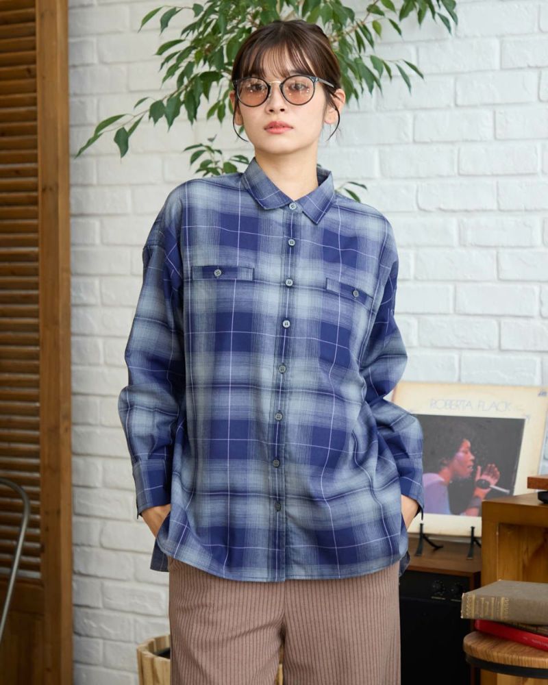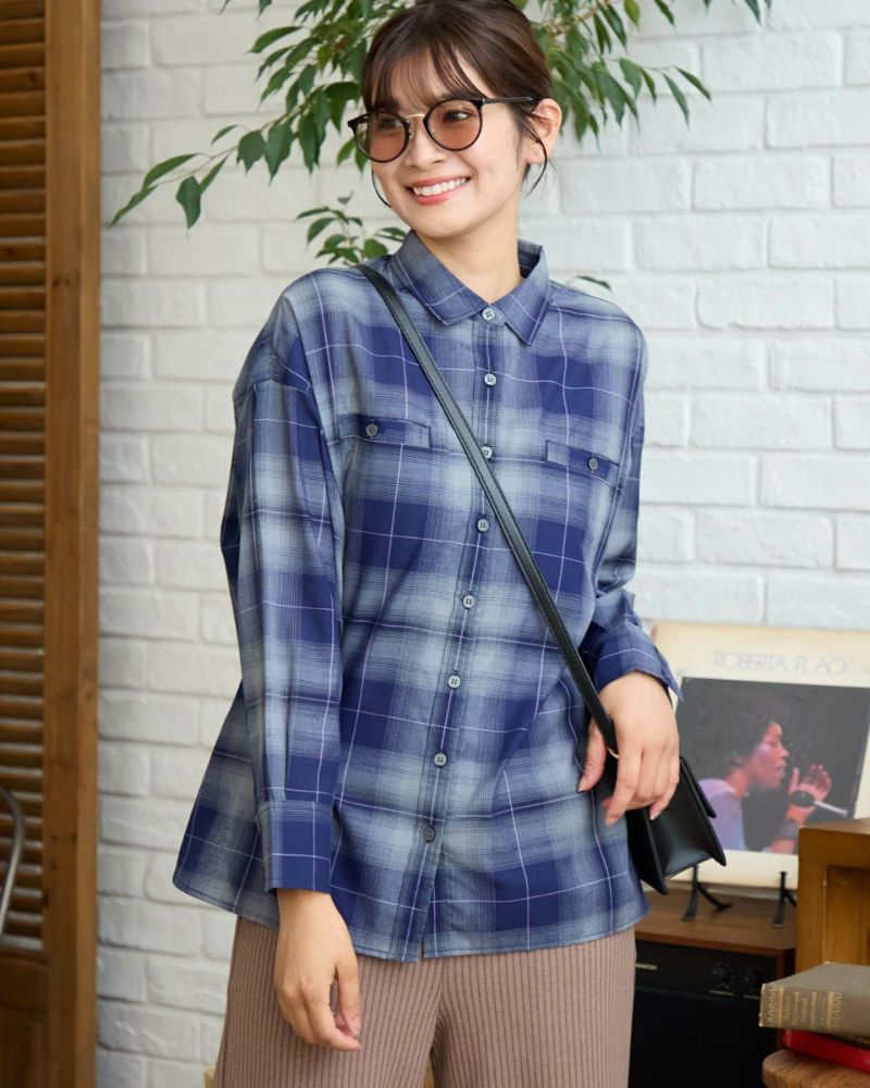 にじむような濃淡が美しいオンブレチェック柄をあしらった、ウール混のシャツ羽織り。軽やかな着心地で、季節の変わり目にさっと羽織るのにぴったりな一枚です。柔らかな表情を引き立てるブラウン系と、クールな印象のブルー系の2色をご用意。ほどよくゆとりのあるシルエットで、カジュアルからきれいめまで幅広いスタイリングに馴染みます。