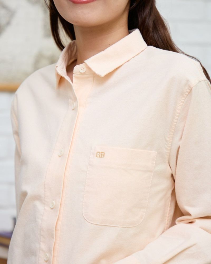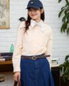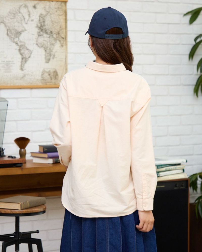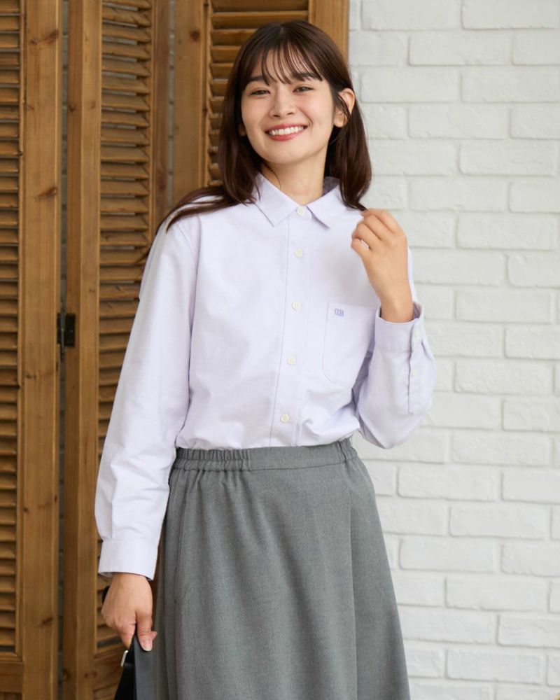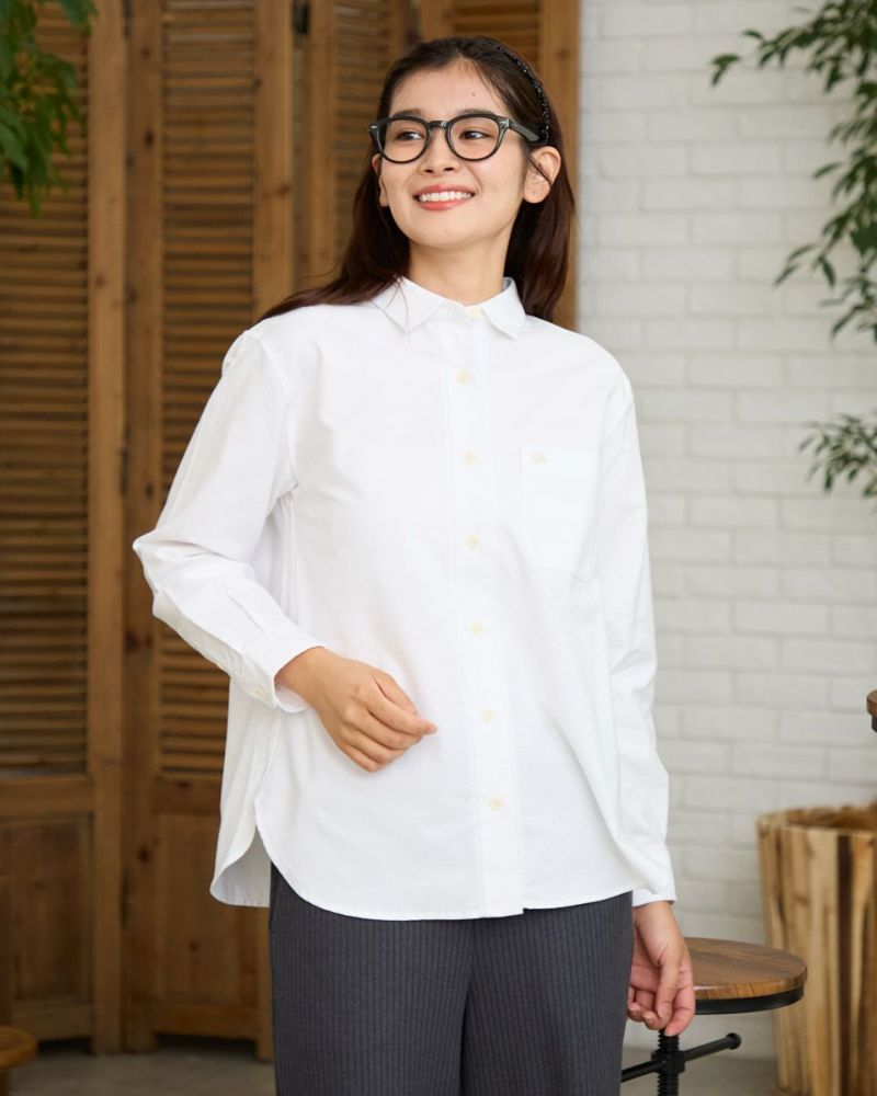 柔らかなカラーリングのオックス素材のシャツです。重くなりがちな秋冬のコーディネートのアクセントになります。襟と前たてにステッチを入れず堅苦しくならないように仕上げました。さりげないGB刺繍もポイントです。 モデル身長: 168 cm 着用サイズ: M サイズ Golden Bear Ladies' ブラウス (Ladies') メンズサイズはこちら 家族コーディネートアイテムはこちら 【着用アイテム】467RC703 超ストレッチパウダーデニム 467RC704 ガウチョパンツ 468RC751 デニムスカート 467RC002 2WAYバッグ