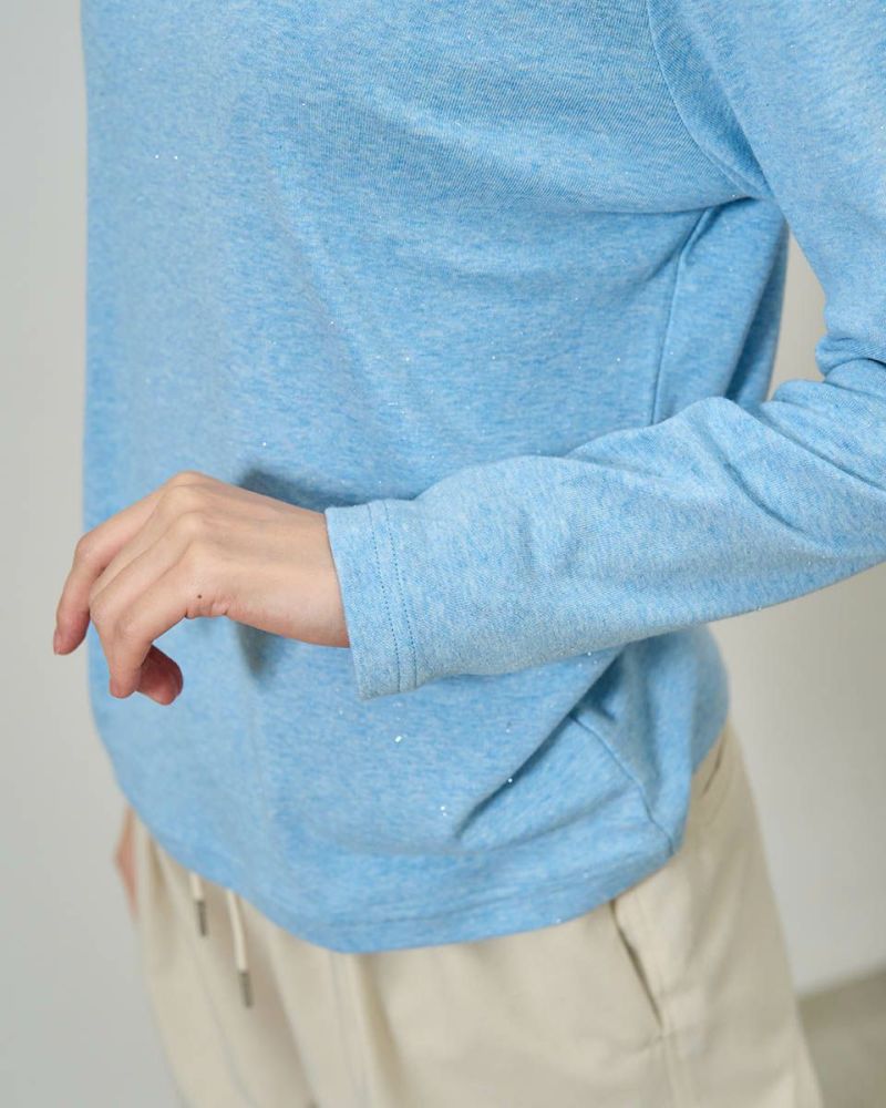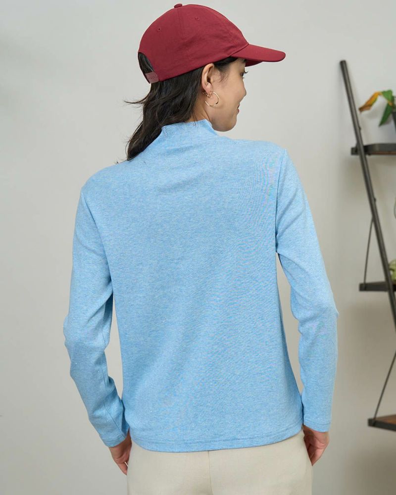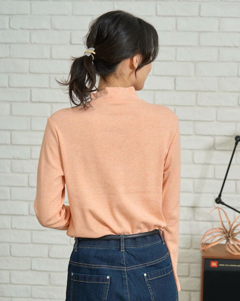 さりげなく光るラメ糸を織り込んだフライス素材のハイネックインナー。柔らかく伸びの良い生地で、肌に心地よくフィットします。控えめなラメが、シンプルなスタイリングに上品なアクセントをプラス。インナーとしての使いやすさにこだわった一枚で、レイヤードのポイント使いに最適です。