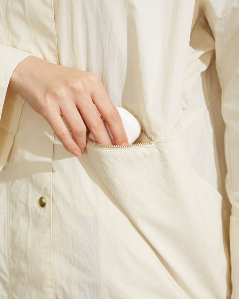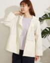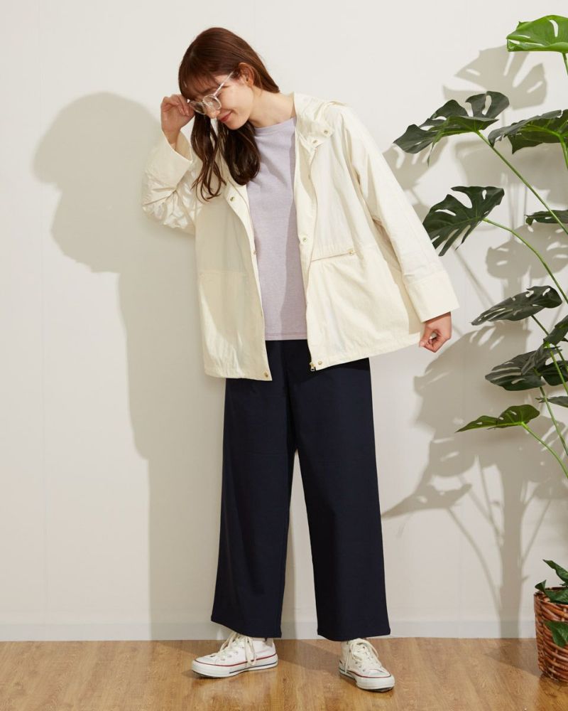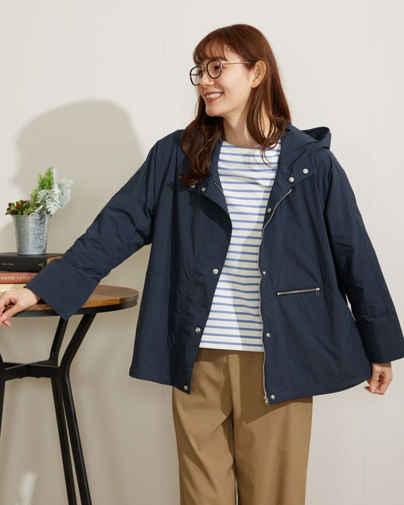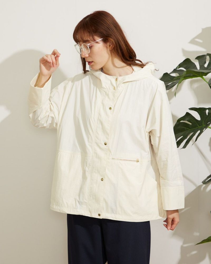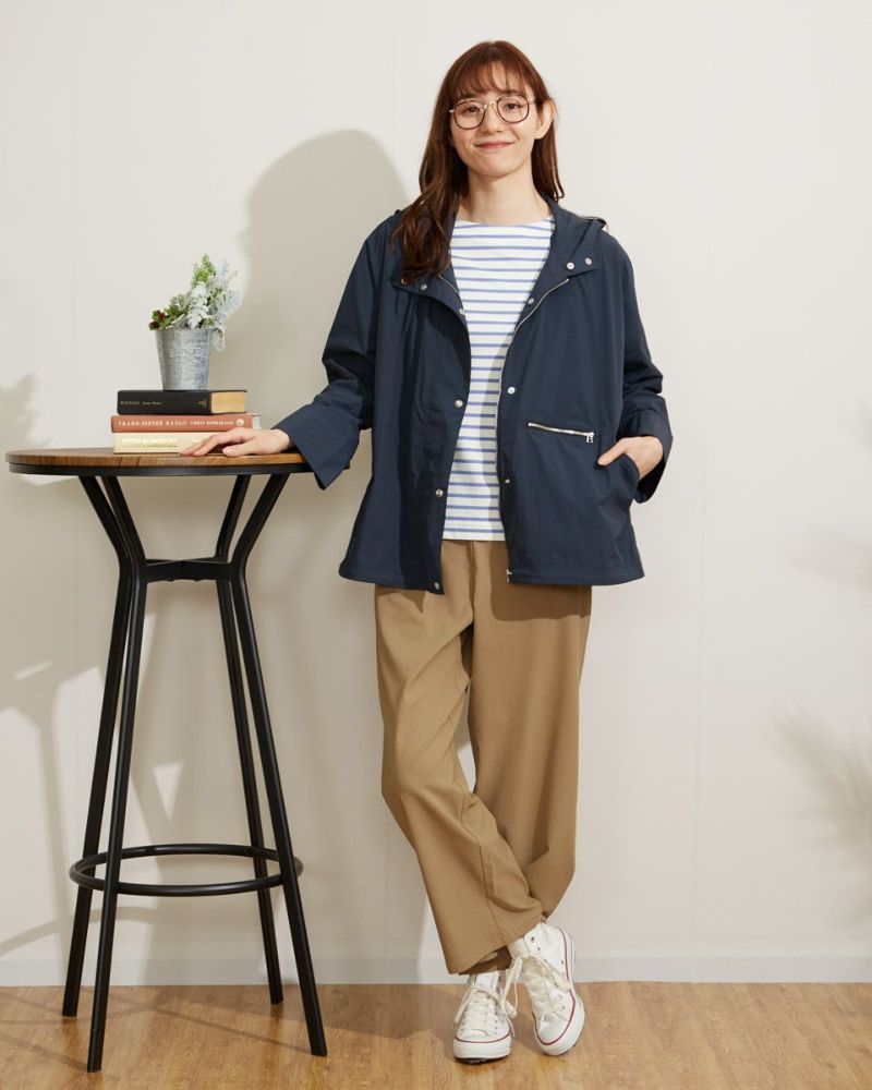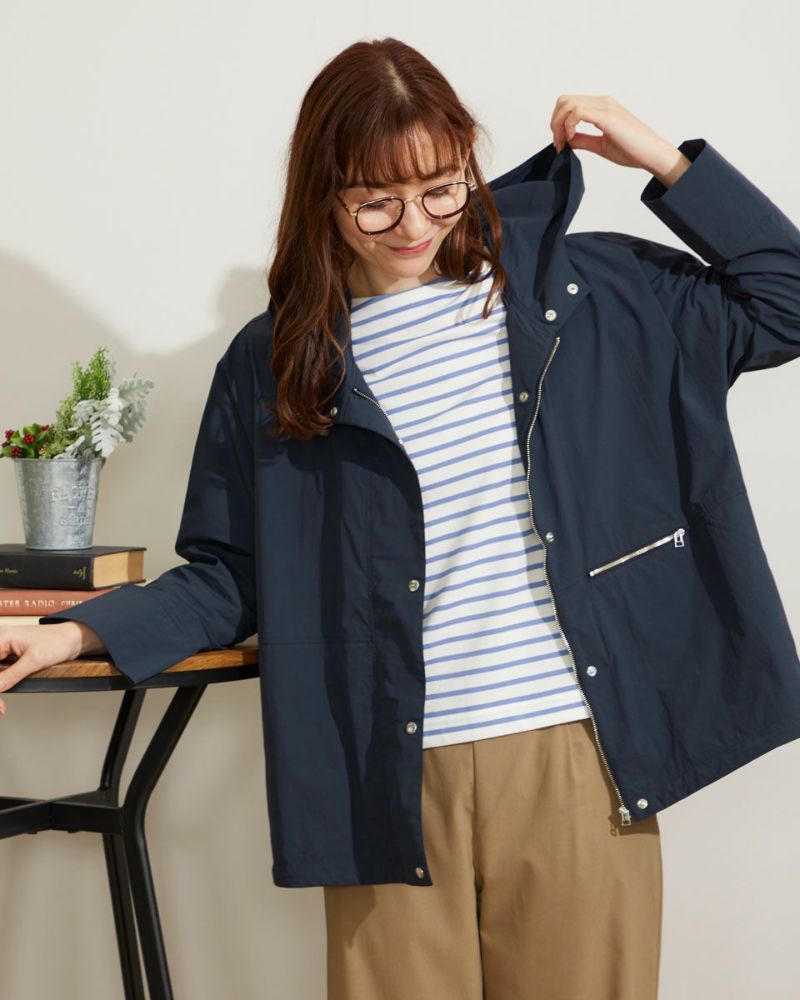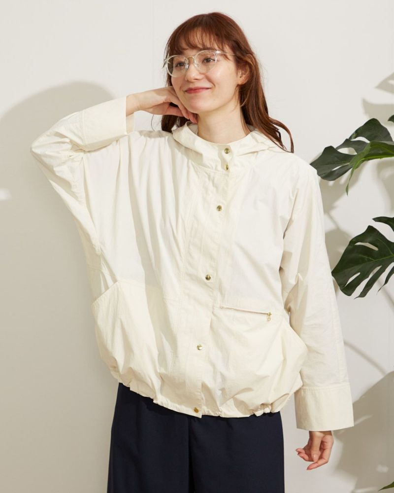 細かいシボ感が親しみやすい素材をセレクト。真面目にまとまりすぎず、ほどよいカジュアルさがあってシーンを問わずデイリーにお召しいただけるブルゾンになっています。アームホールに接ぎを作らないドルマンスリーブのシルエットで袖下にゆとりができ、厚めのインナーとの重ね着もスムーズ。また、袖下で生地がたわみ、軽く羽織った時のシルエットも可愛い1着になっています。フロントの小さなファスナーポケットなどホワイトレーベルらしいフェミニンカジュアルなポイントも魅力です。春の日差しでキラッと光るメタルボタンが着こなしに軽さをプラス。ボトムスを選ばない着丈も便利です。 モデル身長: 171 cm 着用サイズ: M サイズ Golden Bear White Label (Ladies') アウター (Ladies') 【着用アイテム】467Q2432 ボーダーTシャツ 468Q3452 布帛コンビボーダーカットソー 468Q3455 ストライプカットソー 468Q3750 ストレートパンツ