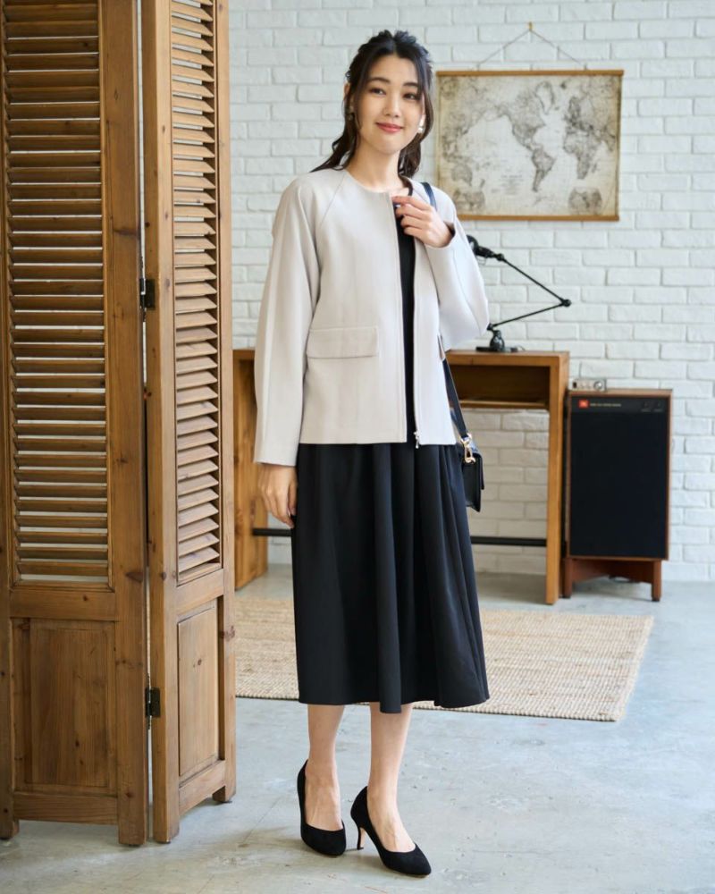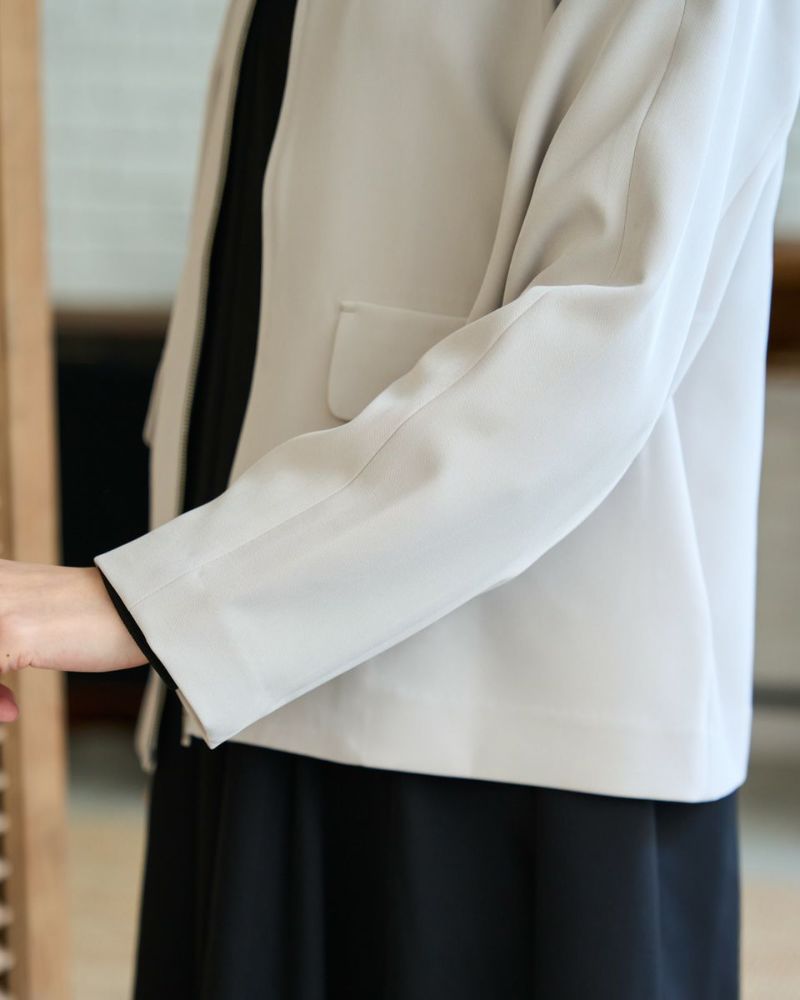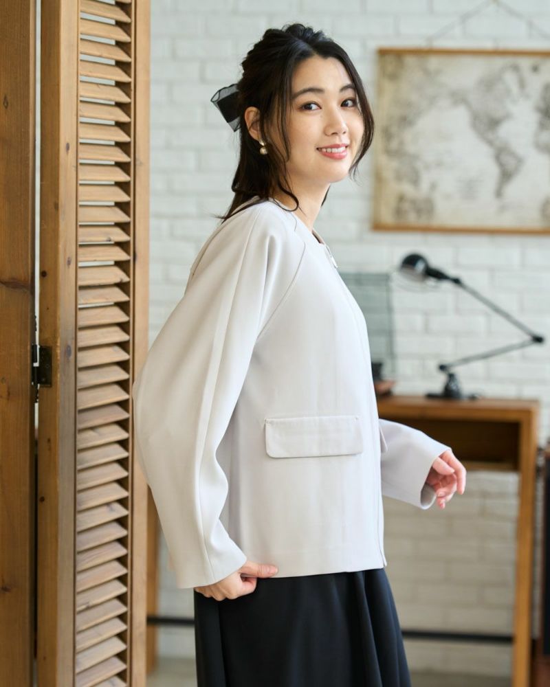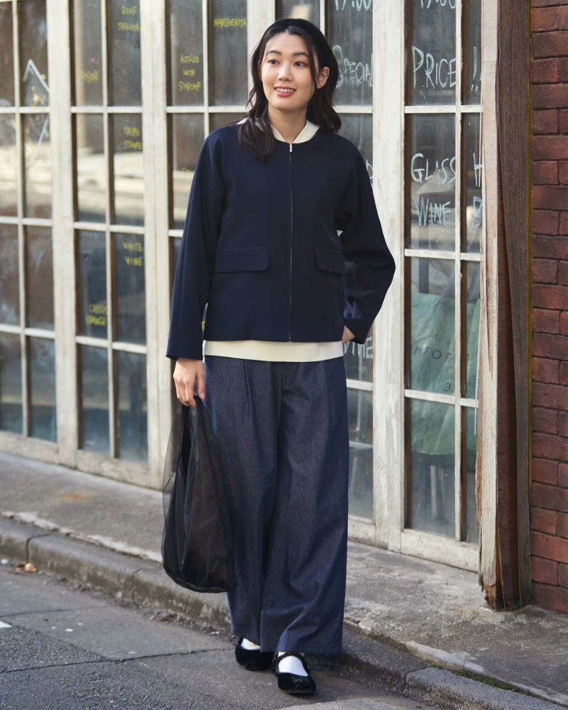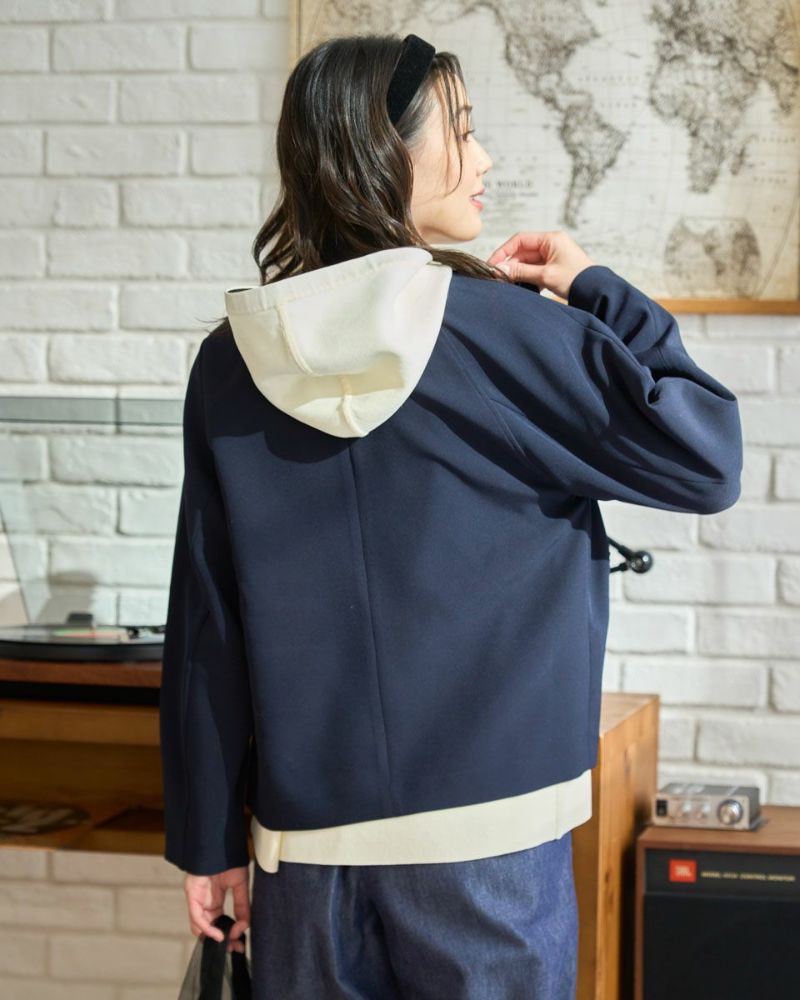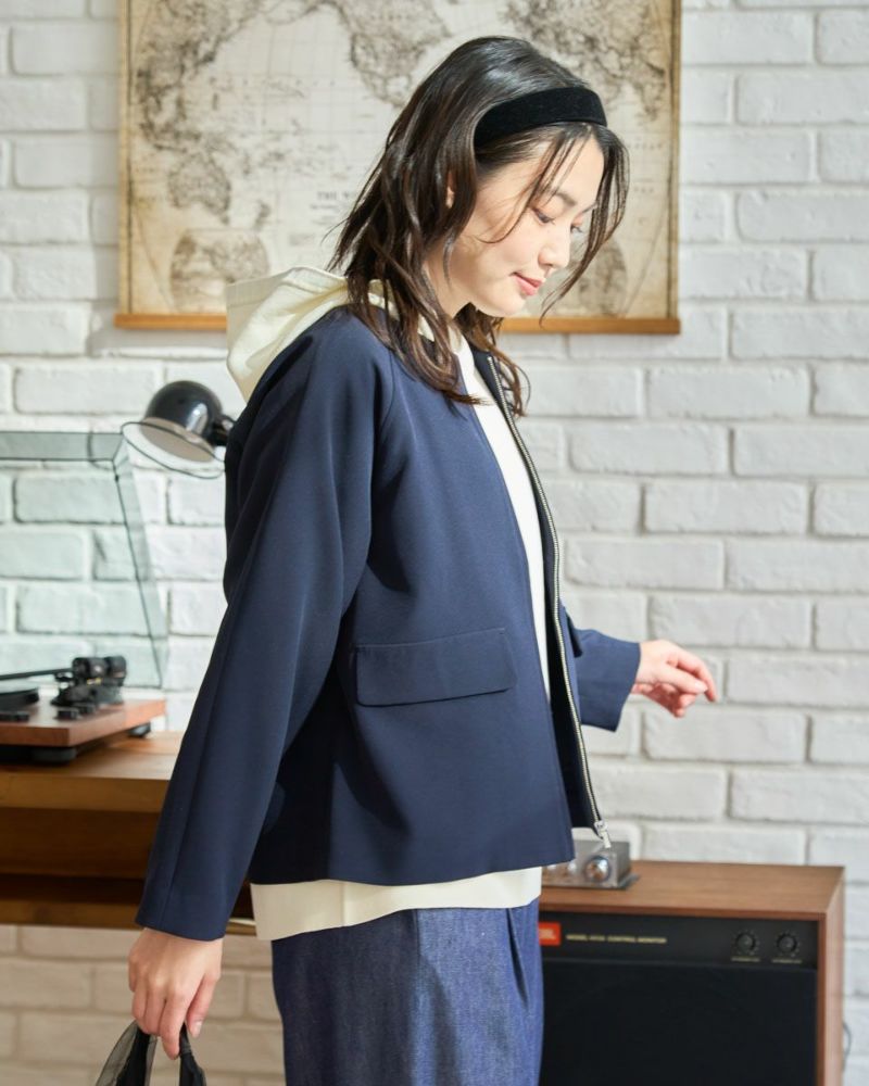 ほどよく弾力のある2重織りの生地は表裏ともに適度に艶が有りキレイな見た目が魅力。ラグラン線のカーブを抑え袖幅を太めにしたシルエットはスポーツ感が薄れモードな雰囲気が漂います。タイトに首に沿うネックラインや腰骨ほどのコンパクトな着丈で上品な1着。フロントのポケットは携帯やハンカチの収納が可能なため、コサージュ添えて卒・入学での着用もおすすめ。ボトムスを選ばずオフィス使いにも便利です。 モデル身長: 166 cm 着用サイズ: M サイズ Golden Bear White Label (Ladies') アウター (Ladies') 【着用アイテム】468R1650 ニットフーディ 468R2351 ワンピース 468R3760 ストレートパンツ