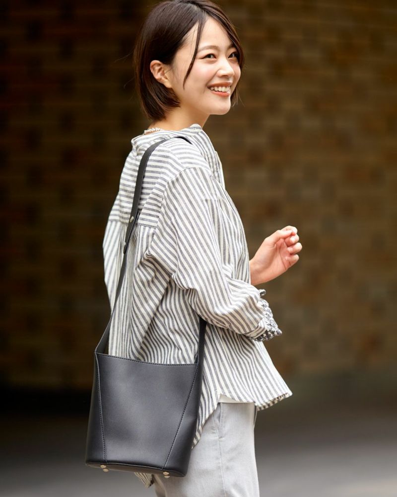 綿麻のナチュラルな風合いの素材が活かされたストライプブラウスです。 前身頃のピンタックは女性らしいディテールポイントです。袖口はカットワーク刺繍を施してクラフト感のある1枚に仕上げています。 モデル身長: 167 cm 着用サイズ: M サイズ 同デザイン通常サイズはこちら Golden Bear QUEEN SIZE(WOMEN 大きいサイズ ) ブラウス (WOMEN)