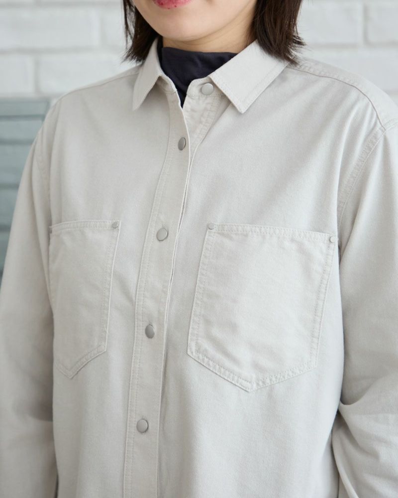 ショート丈のデニムシャツです。柔らかい素材でちょっとした羽織としても使いやすいアイテムです。カジュアルすぎないメタル釦がポイントです。ボリュームのあるボトムスと合わせるスタイリングがおすすめです。 モデル身長: 162 cm 着用サイズ: M サイズ Golden Bear QUEEN SIZE(Ladies' 大きいサイズ ) ブラウス (Ladies') 同デザイン通常サイズはこちら