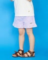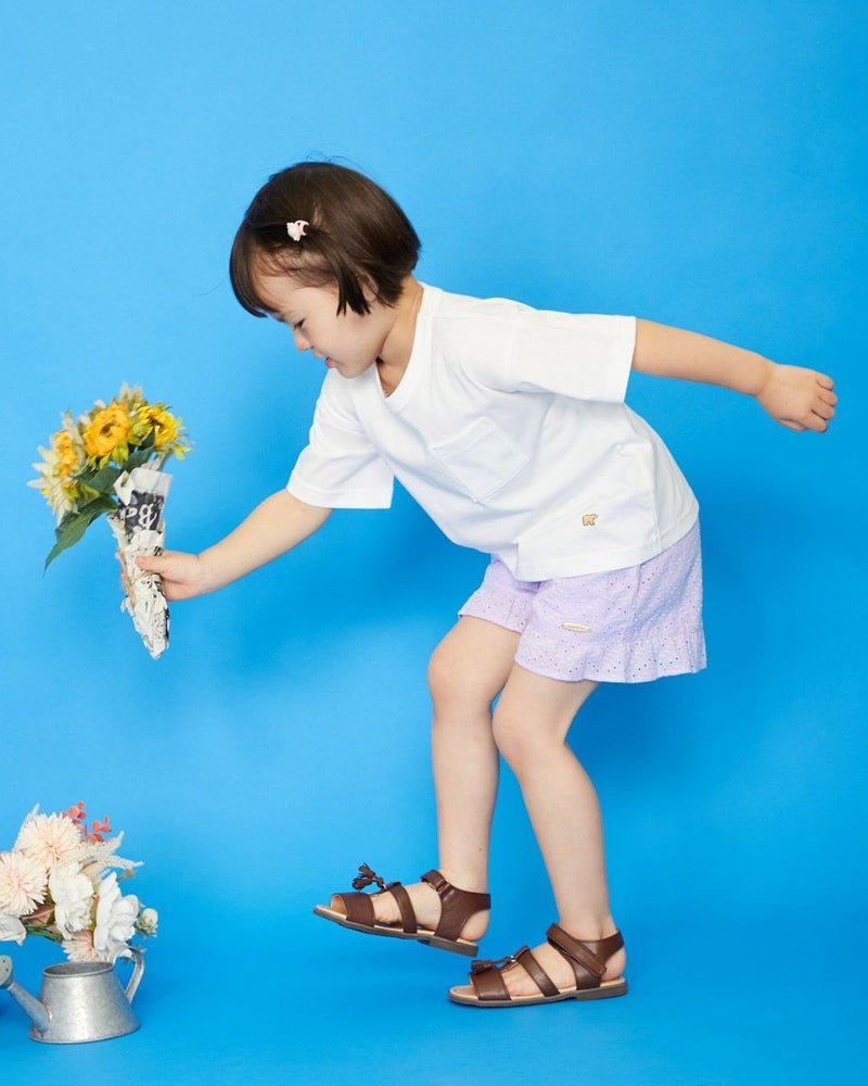 総柄のドビー刺繍の生地を使ったフェミニンスタイルのパンツです。スソのフリルが揺れるキュートなデザインです。ショルダーフリルTシャツ(202J5452)とセットアップをお楽しみいただけます♪ モデル身長: 103 cm 着用サイズ: 100 サイズ セットアップのトップスはこちら Golden Bear KIDS ボトムス (KIDS)