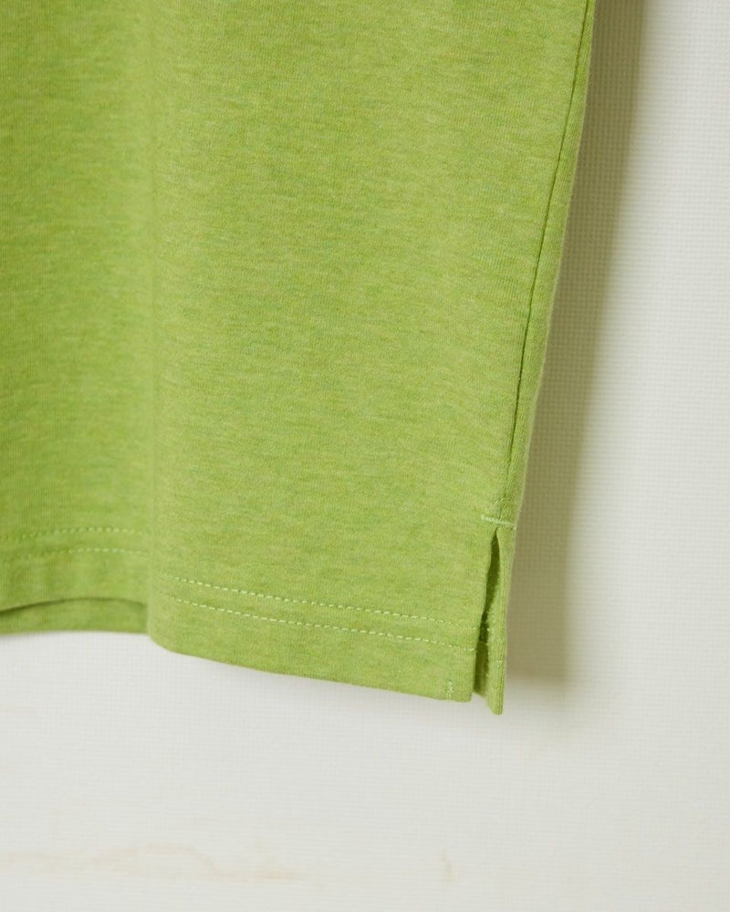 カラー杢のプレーティング天竺を使用したプリントTシャツです。