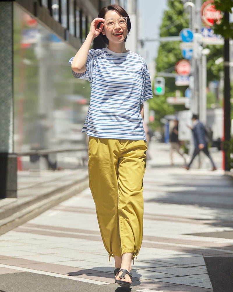 タック入りの太目なシルエットが今年らしいストレートツイルパンツです。気分を上げるからし色と、大人キレイなカーキ色の2色展開です。