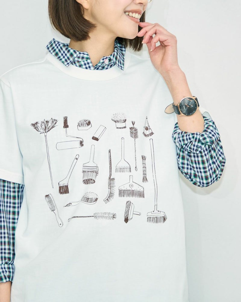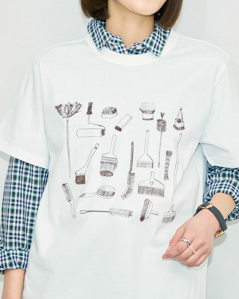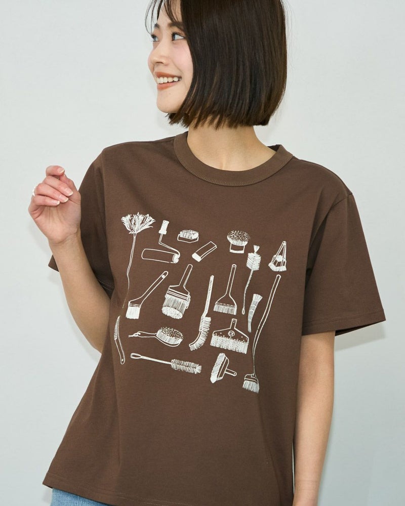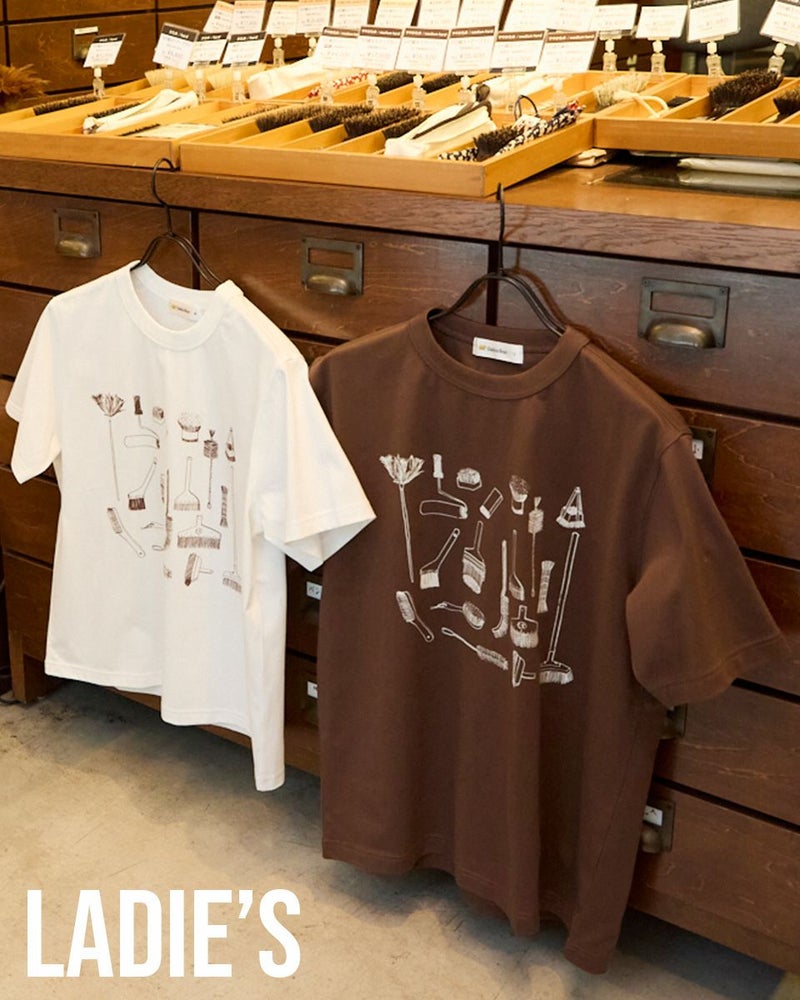 時代を超えて愛される刷毛とブラシの専門店、江戸屋さんとコラボレーションしたTシャツです。カラーは、お店の方が着けていらっしゃるエプロンにヒントを得たアイボリーとブラウンの2色。素材は、接触冷感・透け防止・吸水速乾性に優れた滑らかな肌触りのプレーティング天竺。襟ぐりは強度のあるフライスを使用し、バインダー始末にすることでヨレにくくしています。形は程よくゆとりがあり、体にフィットするスタンダードなレギュラーシルエットです。