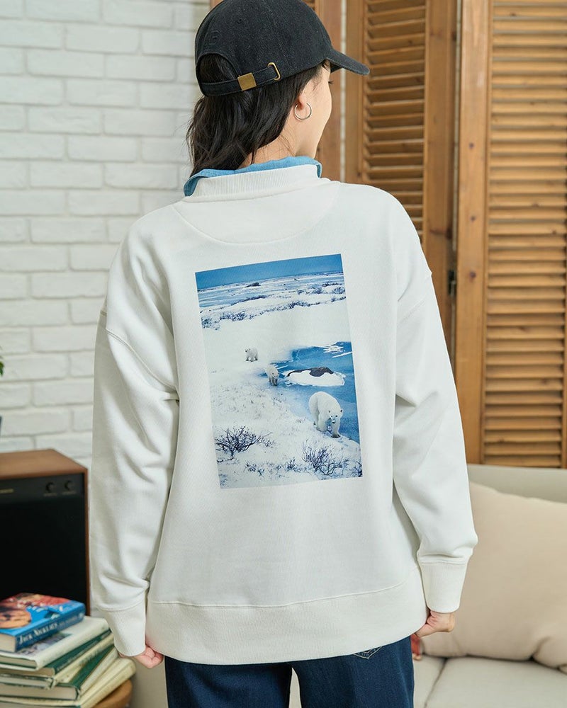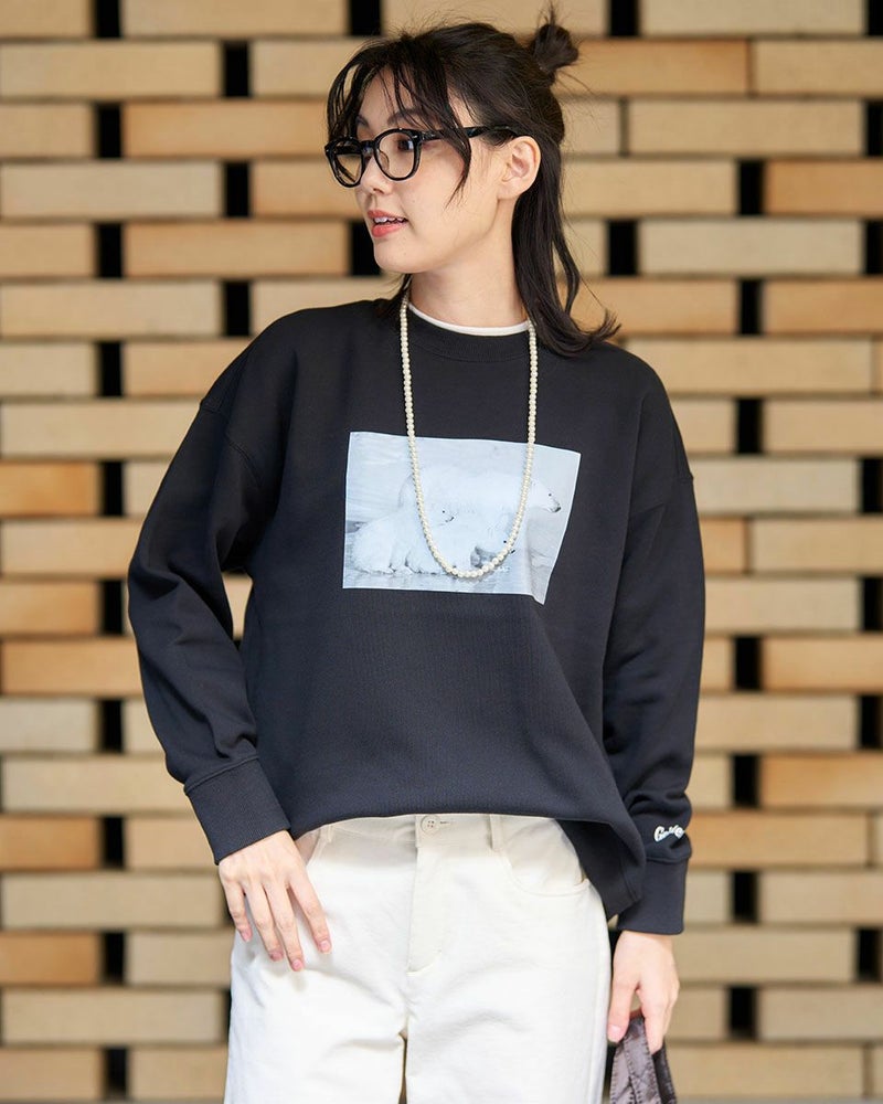 オーガニックコットン100%の裏毛素材を使用した、柔らかな着心地のフォトプリントトレーナー。動物写真家・前川貴行氏とコラボレーションしたスウェットです。