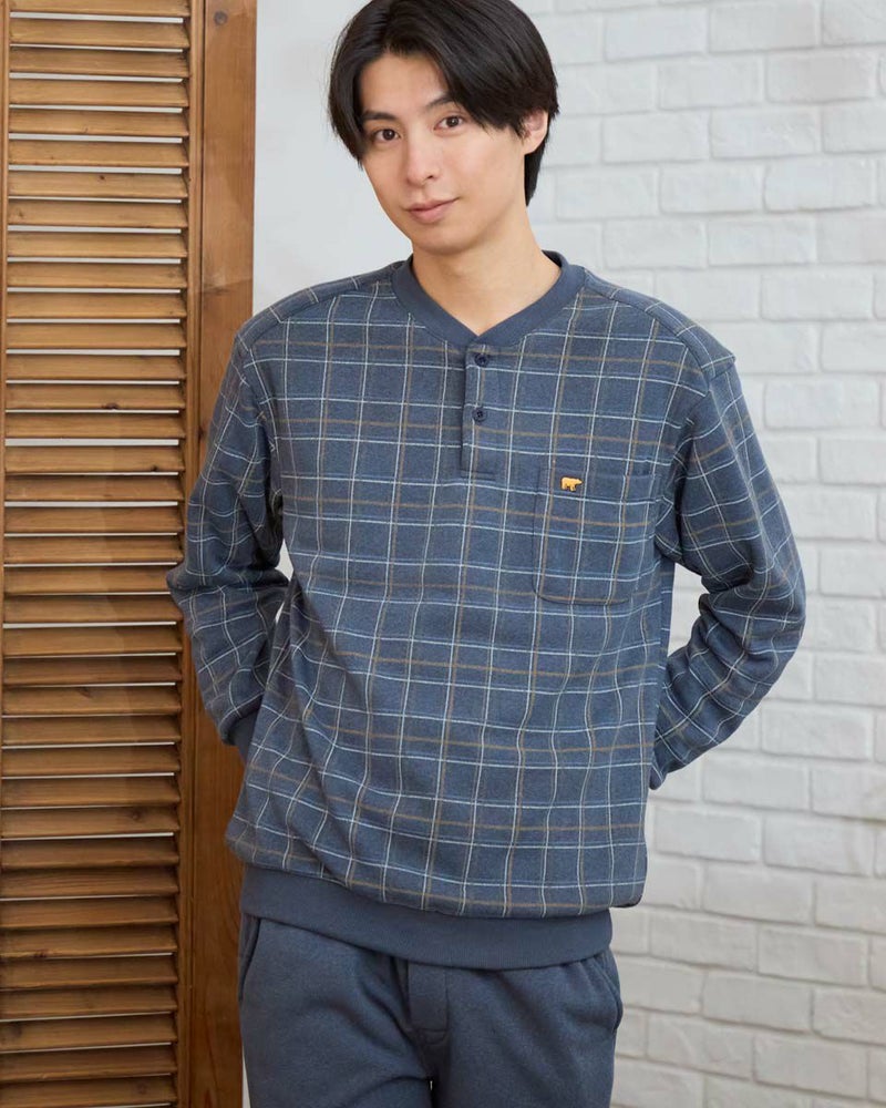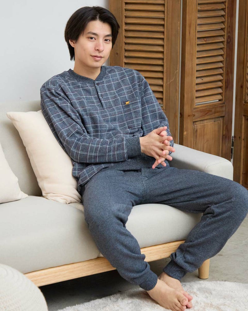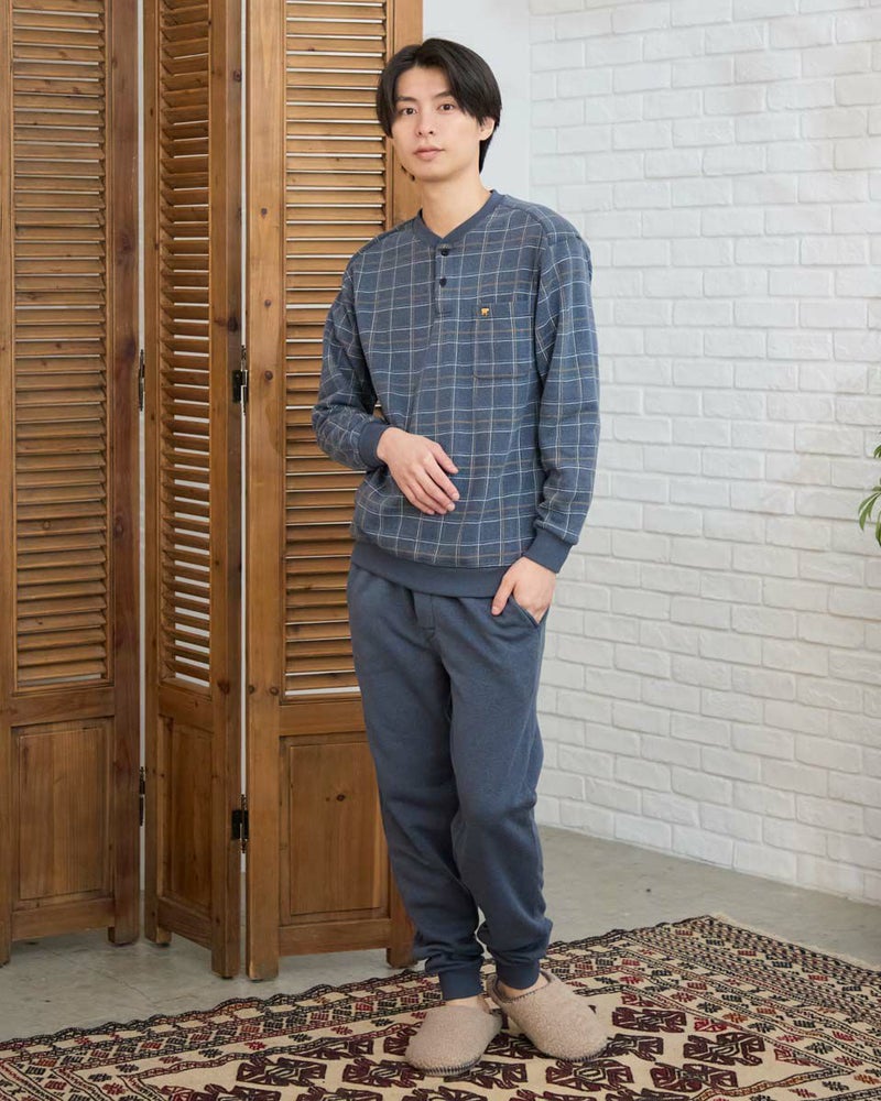 寒さが深まる季節にぴったりの、長袖・長ズボンのカットソーパジャマです。ボリュームのある素材のうら側に起毛を施し、さらに柔らかく暖かなぬくもりを感じられる風合いに仕上げました。内側には肩部分とお尻部分のみ、軽くて保温性に優れたフリース素材を施し、冷えやすい肩や腰まわりを温めます。パンツの裏地にはシャギー生地を採用し、足元までしっかり暖かく快適な着心地を実現しました。