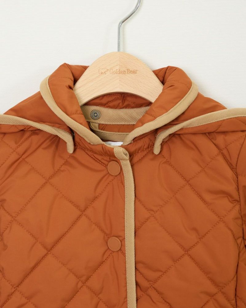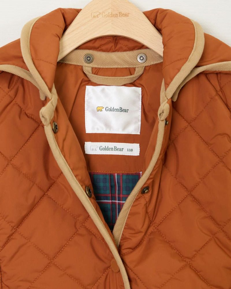 スッキリとしたダイヤ型の中綿キルトジャケットです。
