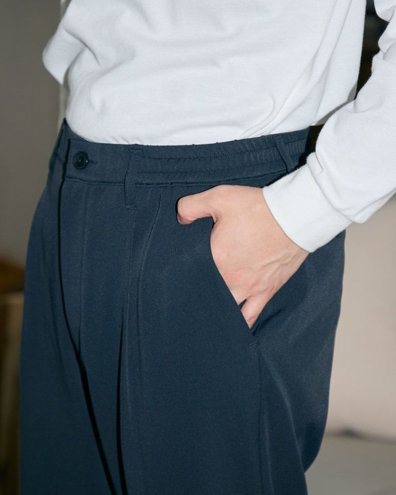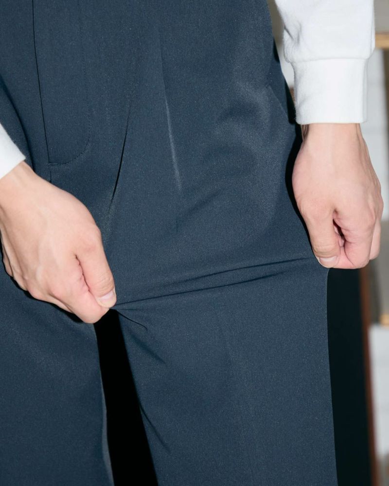 タック入りのデザインが腰まわりや太ももにほどよいゆとりをもたらし、動きやすさと上品な印象を両立することができます。ストレッチ性に優れているので長時間着用してもストレスを感じにくく快適に過ごせます。肌離れがよく、汗をかいてもべたつきにくいのも嬉しいポイントです。