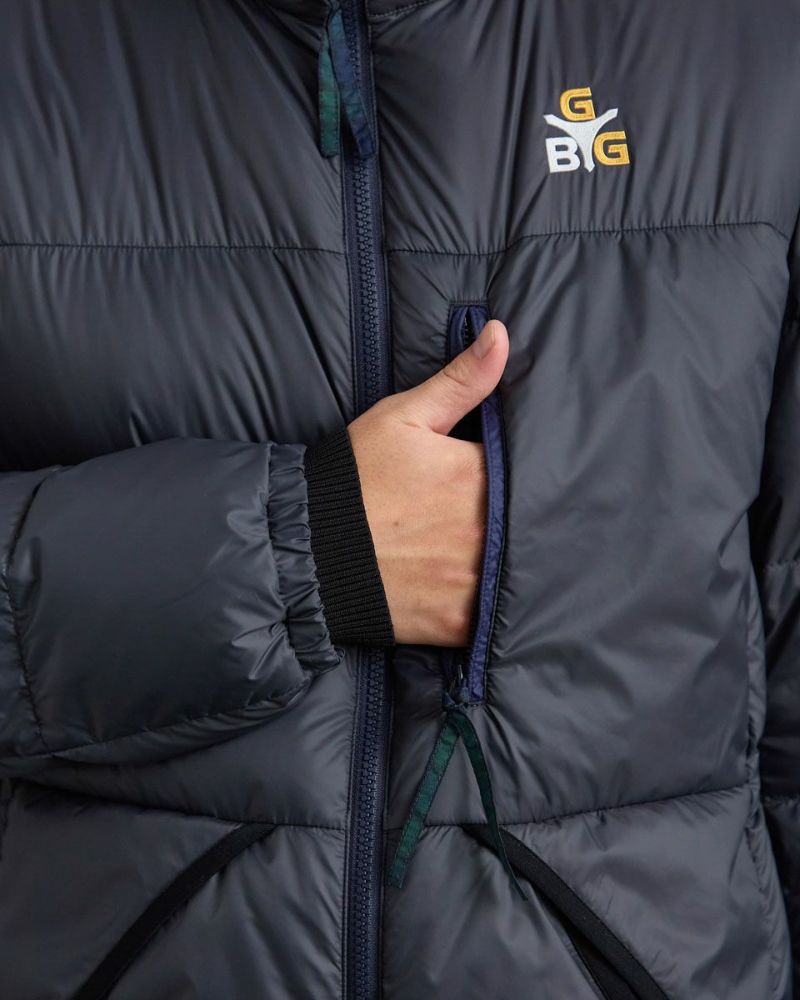 GB GOLF史上一番軽い2層ダウンです。総重量290g(L)と着ていることを忘れてしまう程の軽さが魅力です。軽さを活かすためにシンプルかつスタイリッシュなデザインに仕上げました。チラッと見える柄模様が素敵です。撥水性に優れています。