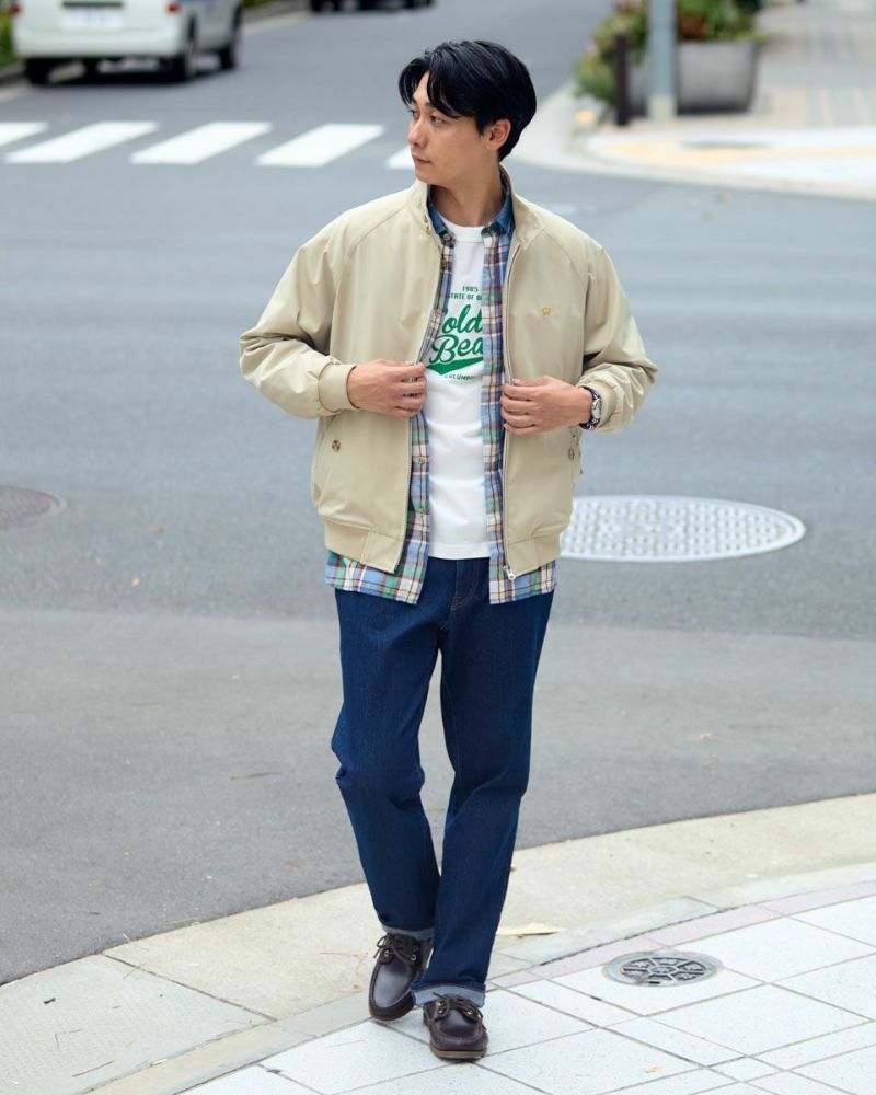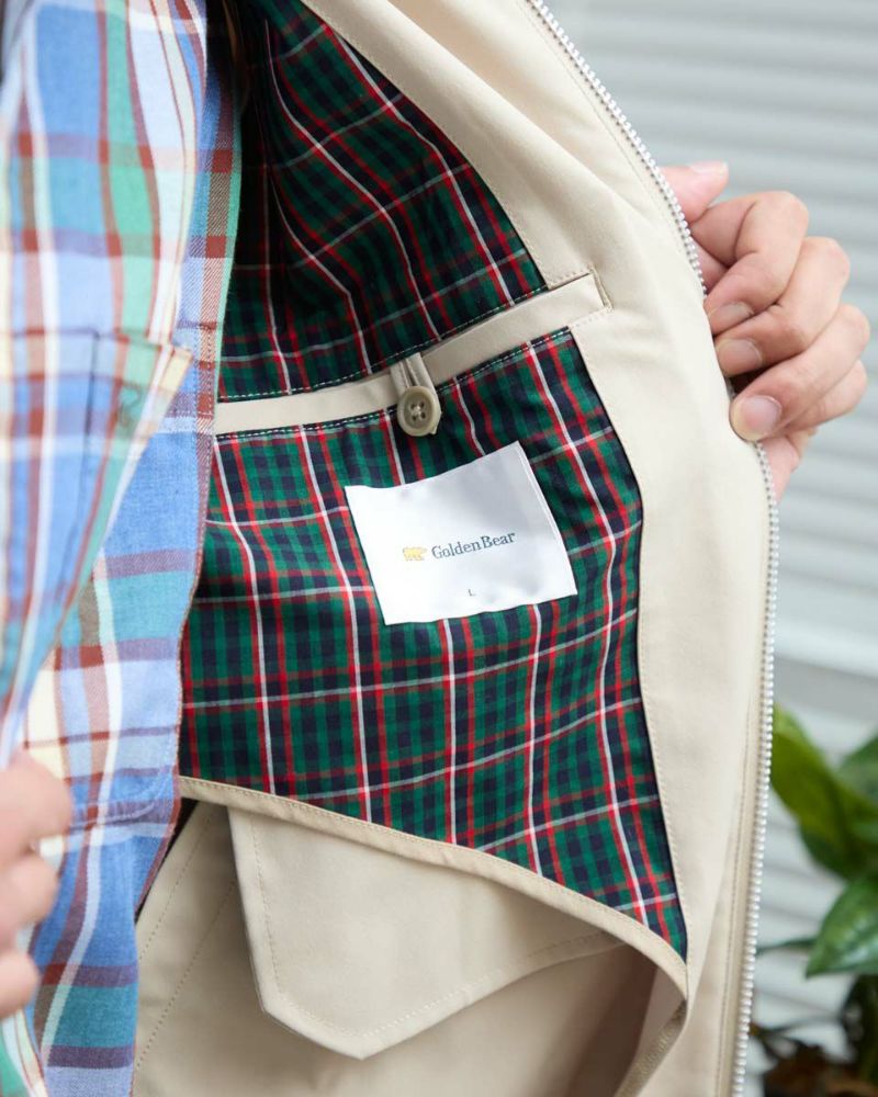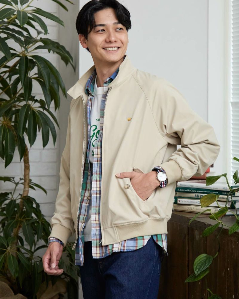 ゴールデンベア定番のスイングトップです。 撥水性に優れたツイル地のポリエステル素材を使用しています。半裏仕様の裏地部分にはゴールデンベアオリジナルチェックを採用。トラッド感のあるアイテムに仕上げました!ラグランスリーブ仕様で着心地がよさがポイントです。 お手入れが楽な家庭洗濯(手洗い)が可能です。 モデル身長: 180 cm 着用サイズ: L サイズ Golden Bear Men's アウター (Men's) 同デザイン大きい(3Lサイズ)はこちら 【着用アイテム】314RC231 デニムシャツ 314RC232 先染めチェックシャツ 314RC414 ハーフZIPスウェット 314RC431 ロゴ長袖Tシャツ 314R8702 デニム 314RC704 イージーパンツ