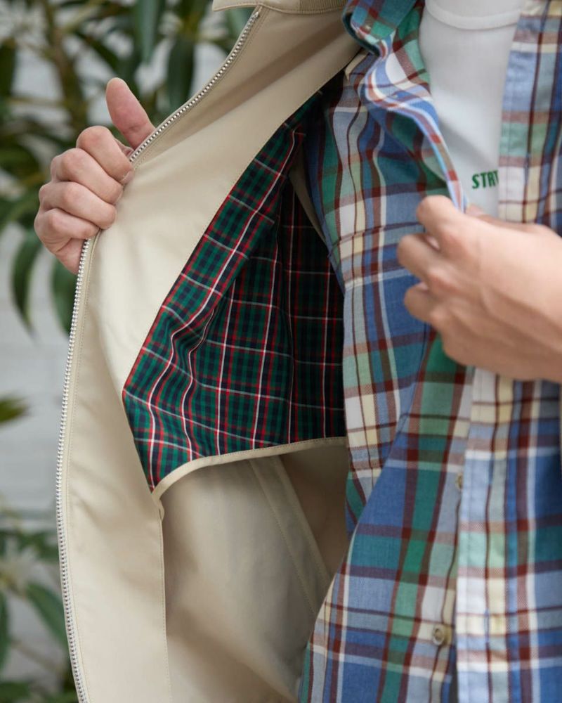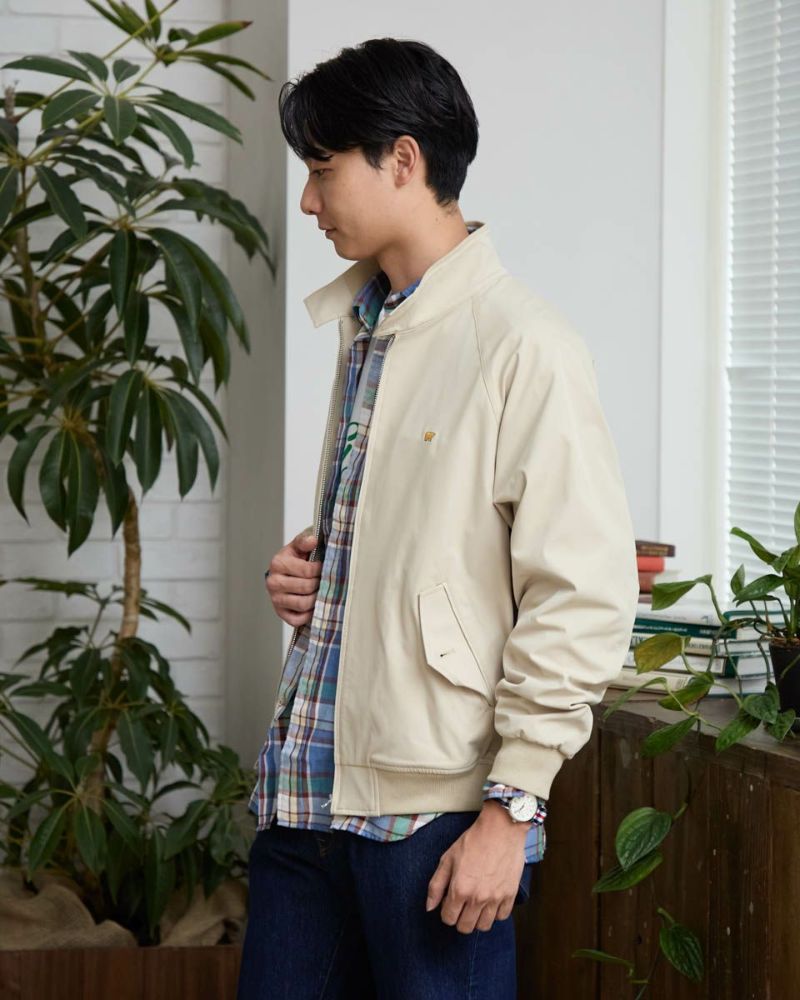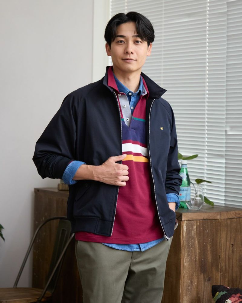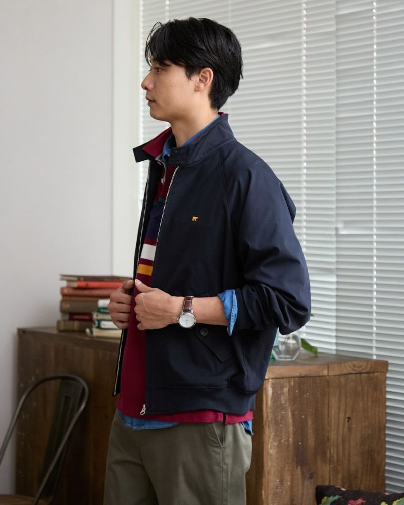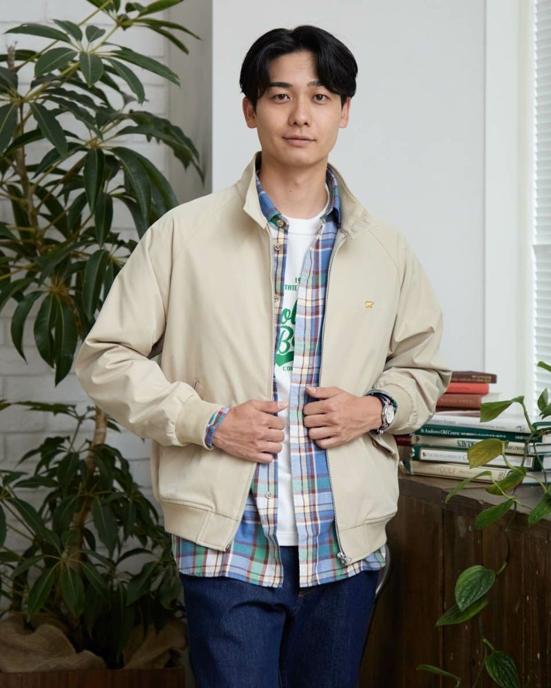 ゴールデンベア定番のスイングトップです。 撥水性に優れたツイル地のポリエステル素材を使用しています。 半裏仕様の裏地部分にはゴールデンベアオリジナルチェックを採用。トラッド感のあるアイテムに仕上げました!ラグランスリーブ仕様で着心地がよさがポイントです。 お手入れが楽な家庭洗濯(手洗い)が可能です。 モデル身長: 180 cm 着用サイズ: L サイズ Golden Bear KING SIZE(Men's 大きいサイズ) アウター (Men's) 同デザイン通常サイズはこちら 【着用アイテム】314RC231 デニムシャツ 314RC232 先染めチェックシャツ 314RC414 ハーフZIPスウェット 314RC431 ロゴ長袖Tシャツ 314R8702 デニム 314RC704 イージーパンツ