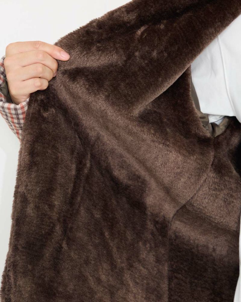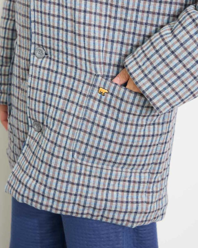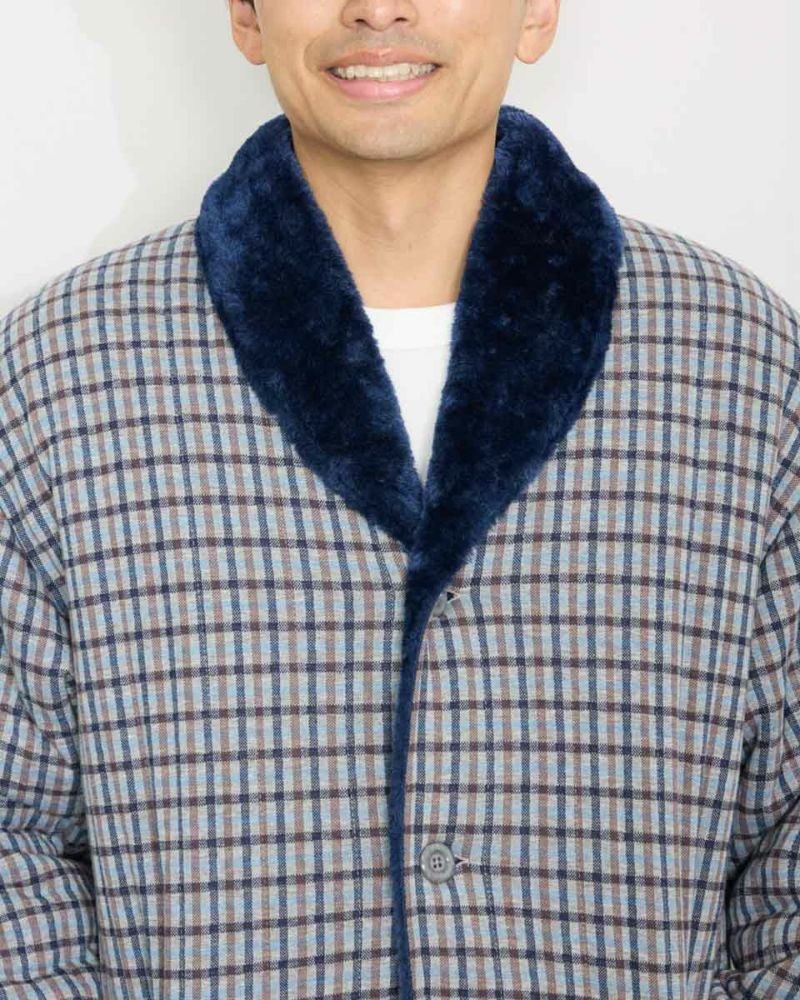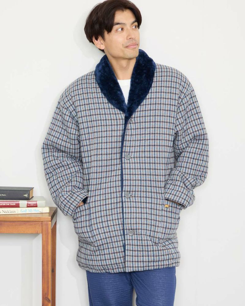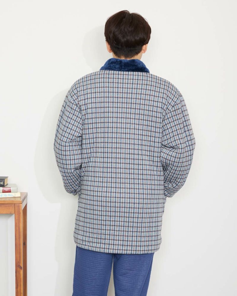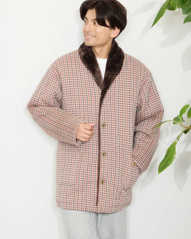 チェック柄の中綿入りジャケットです。柔らかなジャカード素材を使用しました。裏生地は、ボリュームのあるボア素材仕様で、暖かさと着心地の良さがおすすめです。肌寒い季節に羽織っていただける快適アイテムです。