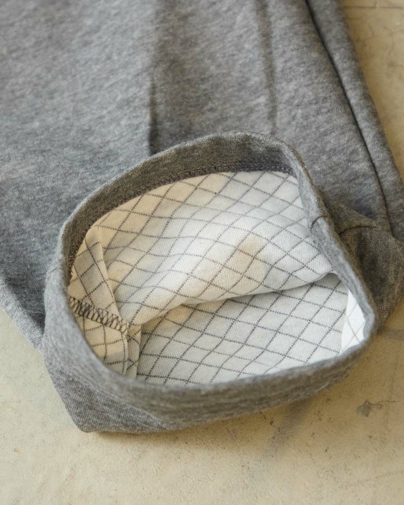 また、ボトムスは前開き仕様で、ヒップラインにゆとりを持ったパターンでゆったりとした着用感になります。ウエストゴムに細いコールゴム2本を採用しているのでソフトなフィット感をお楽しみいただけます。