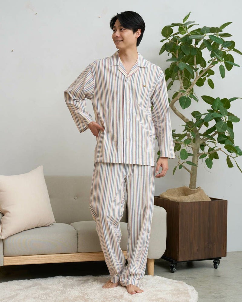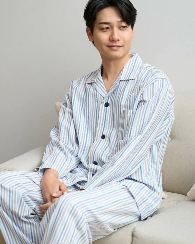 春の季節におすすめの長袖テーラードパジャマです。肌にやさしい綿100%を使用しており、睡眠時の汗を吸い、蒸れにくく快適にお過ごしいただけます。ツイル素材ならではのやわらかな風合いは、ゆったりとしたサイズ感で締め付け感がなく、寝返りもしやすいため、就寝時も快適です。ストライプ柄は爽やかな印象をあたえるので、春らしい軽やかな雰囲気でお過ごしいただけます。