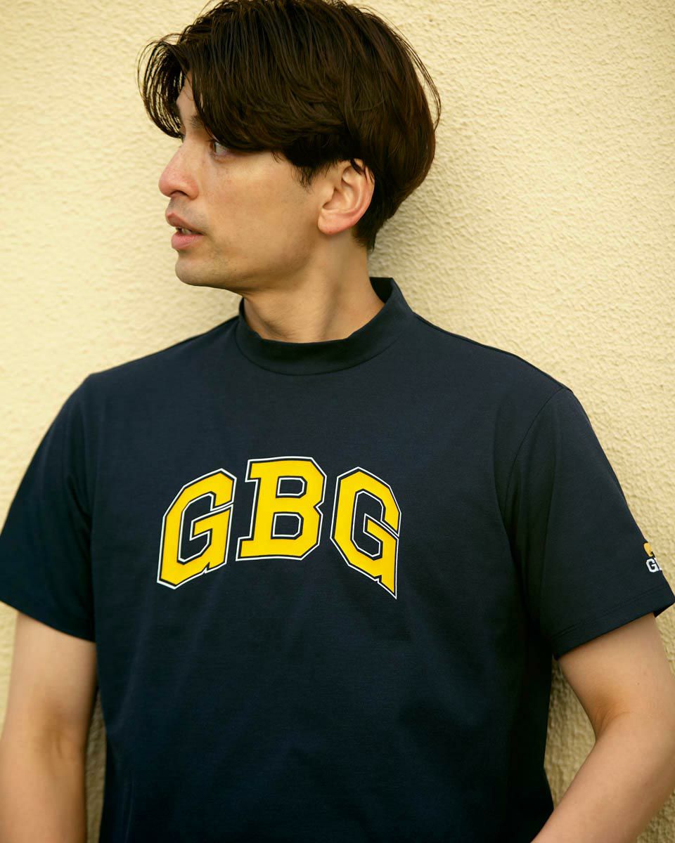 1980年代風のカレッジロゴをモチーフにしたミニモックネックTシャツです。ビンテージ感の漂う風合いが魅力です。吸水速乾性と、UVカット機能に優れています。