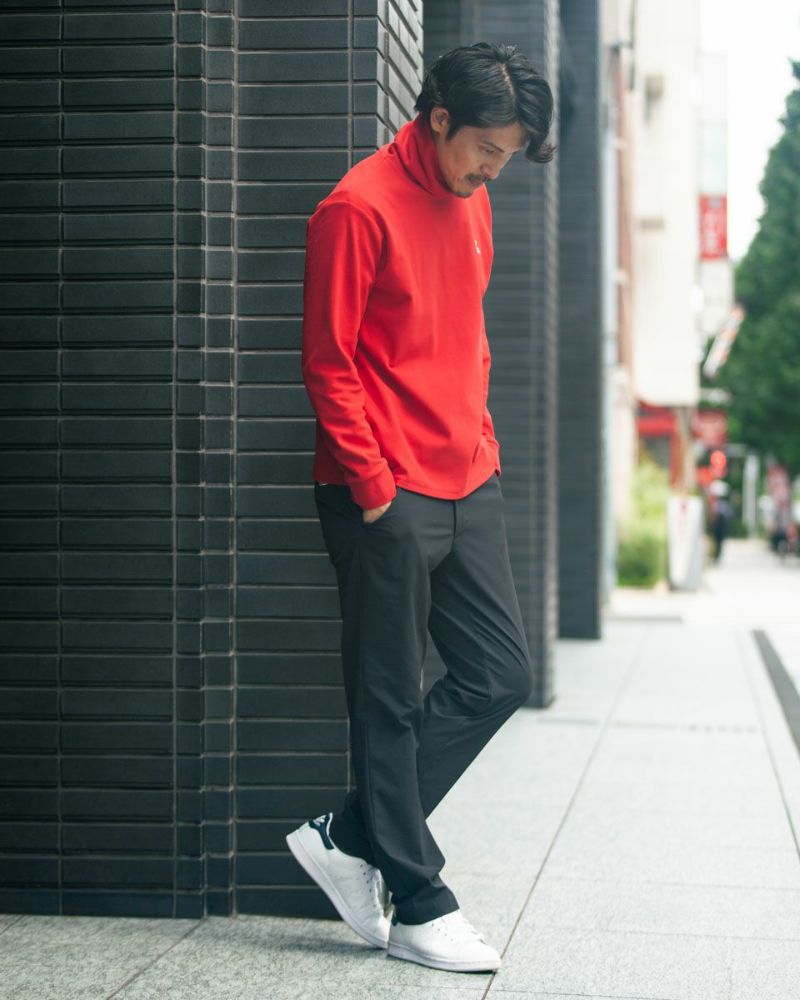 モチモチとした弾力のある素材を使用したタートルネックTシャツです。体から発する水蒸気を吸湿することで発熱する特殊な糸を使用しています。 1枚着だけでなく、様々なレイヤードスタイルに最適です。首元を暖かく、オシャレに着飾ります。今シーズン、インナーとして最もオススメしたいアイテムです。 モデル身長: 180 cm 着用サイズ: L サイズ GB GOLF カットソー (Men's) 【着用アイテム】 GBGパンツ (品番: 312QD705 ) GBGスラックス (品番: 312QC703 )