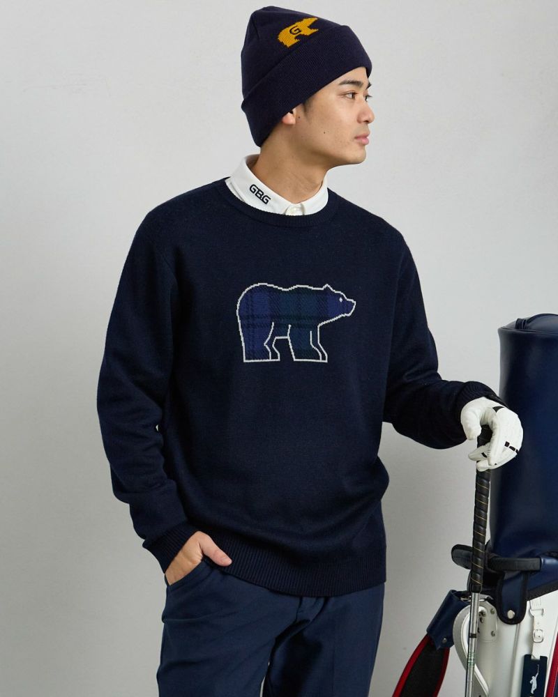 前後に施されたクマが嫌味なく、アイコンになっていて、着心地も抜群!お家庭洗濯も簡単なアイテムなのでお手入れも簡単!ウールを使用しているので、生地に柔らかさもあります。中にシャツを合わせていいですし、一枚で着てもサマになる、今期とっておきのアイテムです!