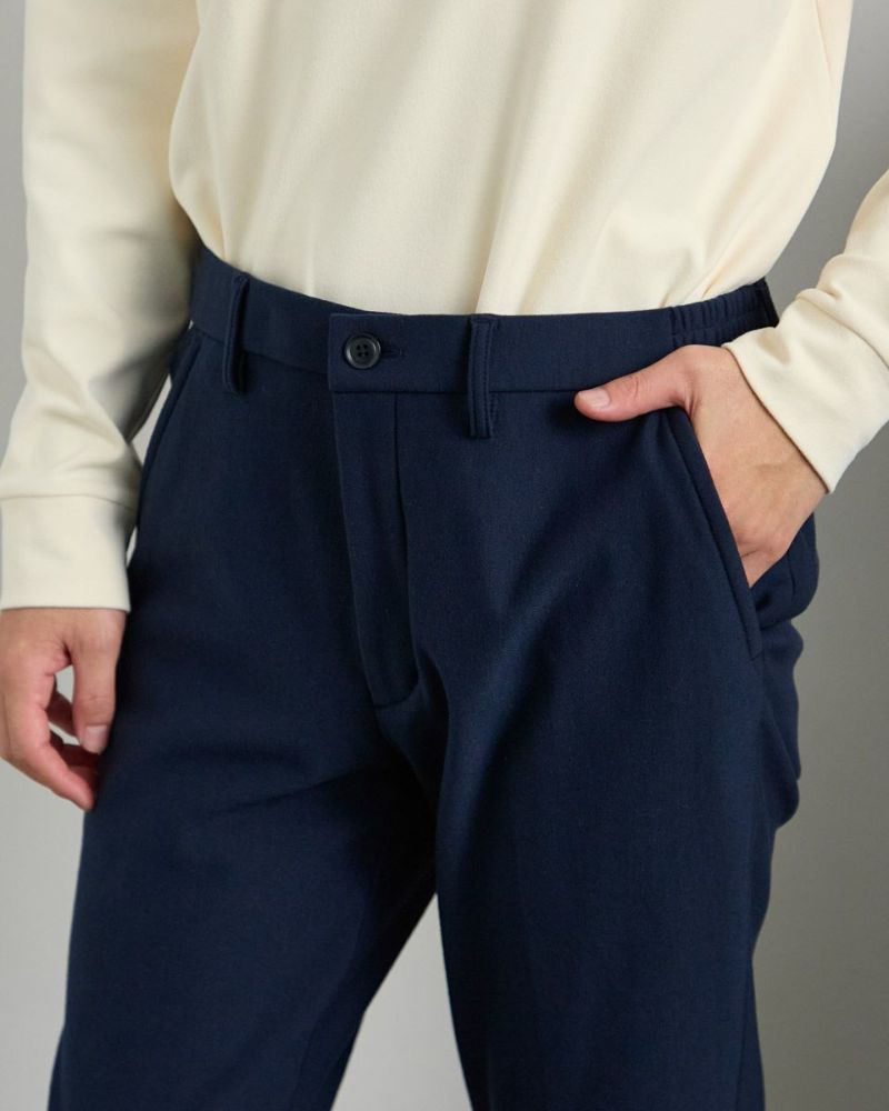 定番のGBG裏起毛パンツでスラックスを企画しました。ストレッチ性に優れ、柔らかいニットジャージ素材を使用しています。光を吸収し、熱に変える素材を用いることで保温性も抜群。なにとでも着合わせやすいストレートシルエットです。