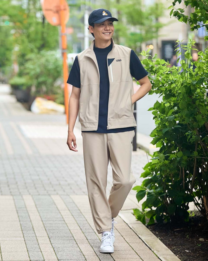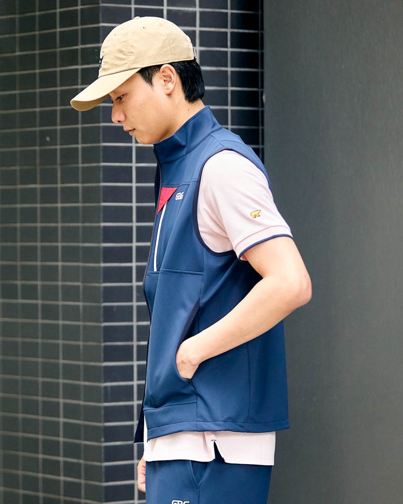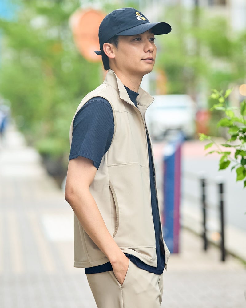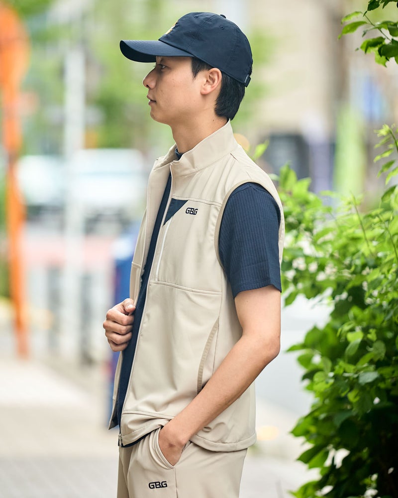 夏場のゴルフやレジャーで、もう一枚羽織りたい。そんな時に最適なのが、このGBGOLFベストです。ナイロンストレッチハニカムメッシュ素材は、触れるとひんやりと感じる接触冷感性を持ち、優れたストレッチ性であらゆる動きをサポートします。汗をかいてもべたつかない総裏メッシュ仕様で、常に快適な着心地。洗練された配色デザインは、シンプルなポロシャツの上に羽織るだけで、スマートかつスタイリッシュな装いを演出します。ゴルフから普段使いまで、夏の装いに差をつける、機能的かつ上品な一着です。