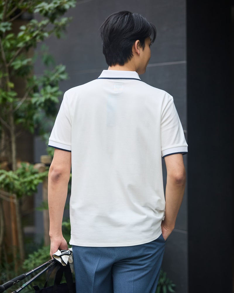 定番のCITYポロシャツは、今シーズンも大人の装いを格上げします。襟と袖口のラインデザインは普遍的な上品さを保ちつつ、左胸にあしらわれたリブ生地の玉縁ポケットが、さりげないアクセントに。綿とポリエステルの混紡カノコ素材には、シルケット加工を施すことで、毛羽立ちを抑えたなめらかな肌触りと、深みのある光沢感を実現。カジュアルながらもきちんと感があり、品格と快適さを両立させた一枚です。