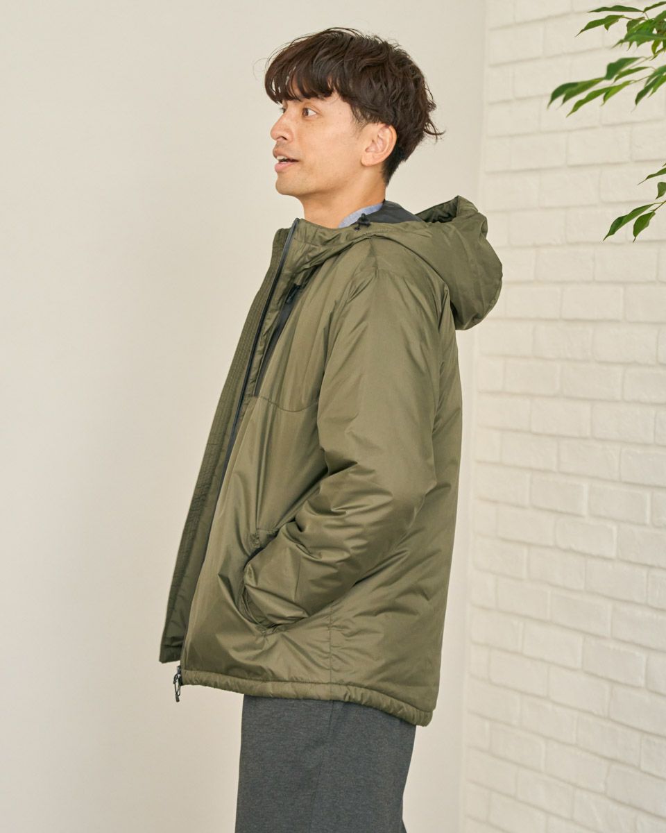 洗える中綿フーディジャケットです。撥水性に優れたリップストップ生地を使用しています。暖かさも厚みも普段のスタイリングに最適な万能アウターです。 モデル身長: 180 cm 着用サイズ: L サイズ 同デザイン大きい(3L,4Lサイズ)はこちら Golden Bear MEN アウター (MEN) 【着用アイテム】314QE621 クルーネックニット 314QB440 GB天竺Tシャツ 314QD611 クルーネックニット 314QC210 バンドカラーシャツ 314QD716 コーデュロイパンツ 314QC711 イージーパンツ