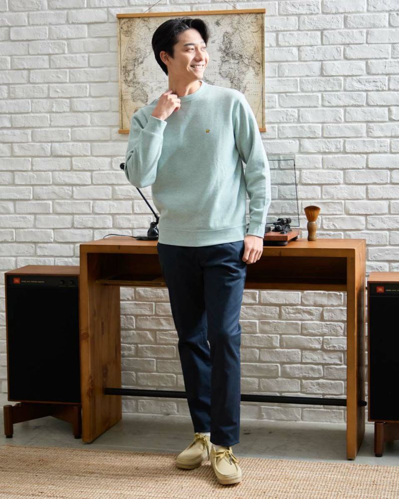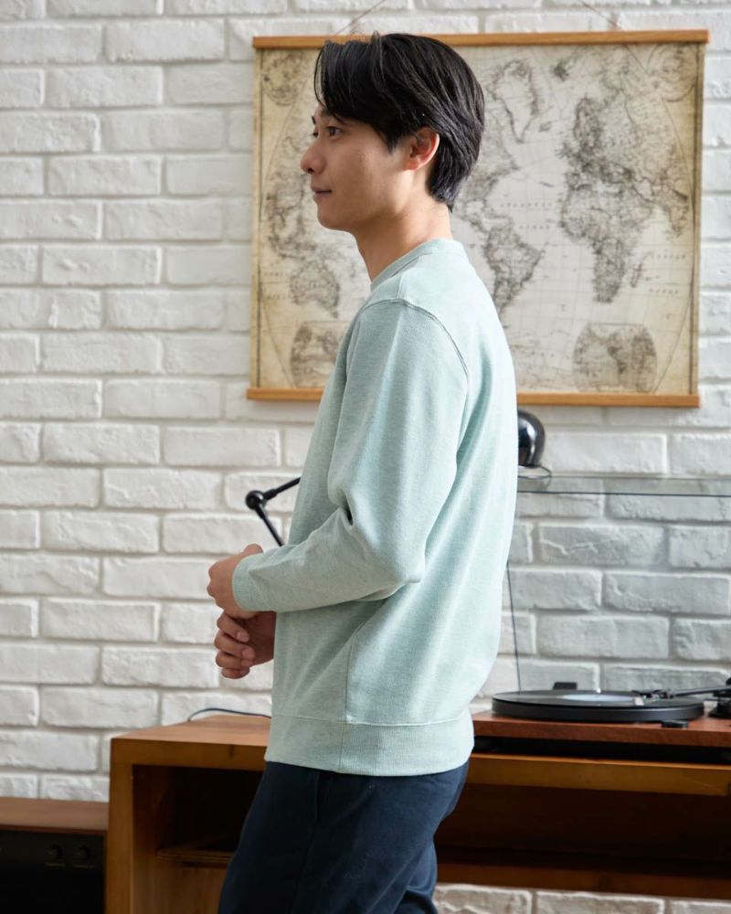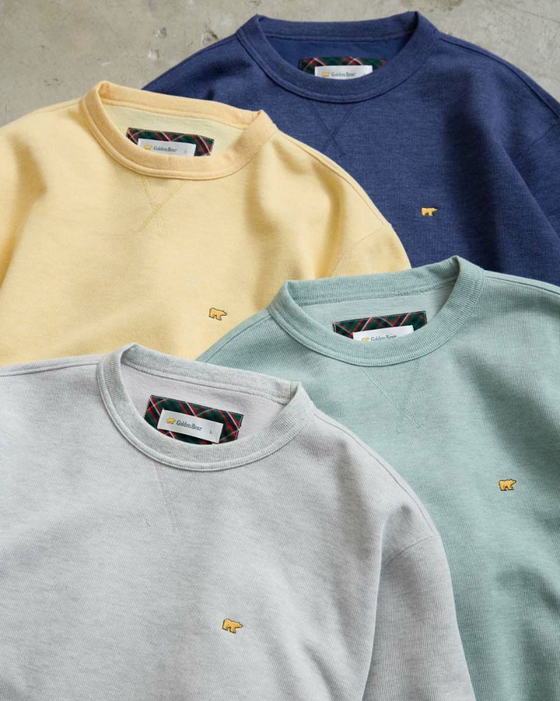 金熊刺繍のクルーネックスウェットです。柔らかく着心地のよいダブルフェイス生地を使用しています。襟部分をバインダー仕様にすることで、ヨレにくい強度の襟に改良しました。春を感じるさわやかな色合いをお楽しみ下さい。