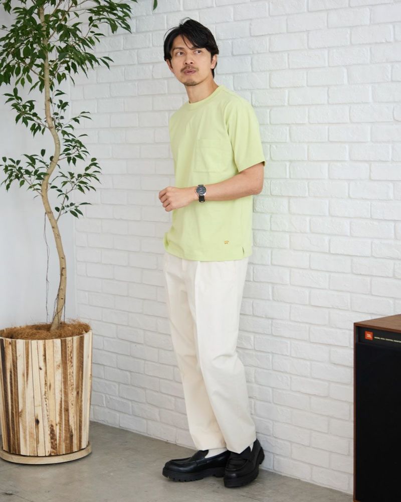 Tシャツを洗濯したら襟がヨレてしまった…という経験、ありますよね? Golden Bearの無地Tシャツは、強度のあるフライス素材で身生地を挟み込むバインダー仕様を採用。洗濯を繰り返しても襟がヨレにくく長くご愛用いただけます。