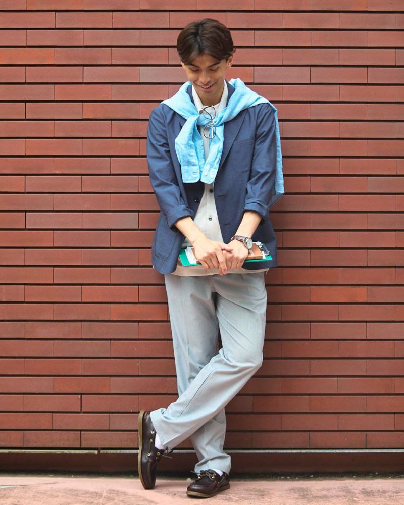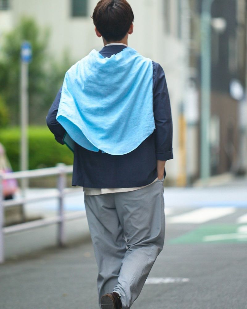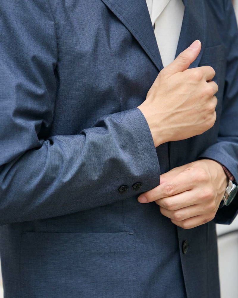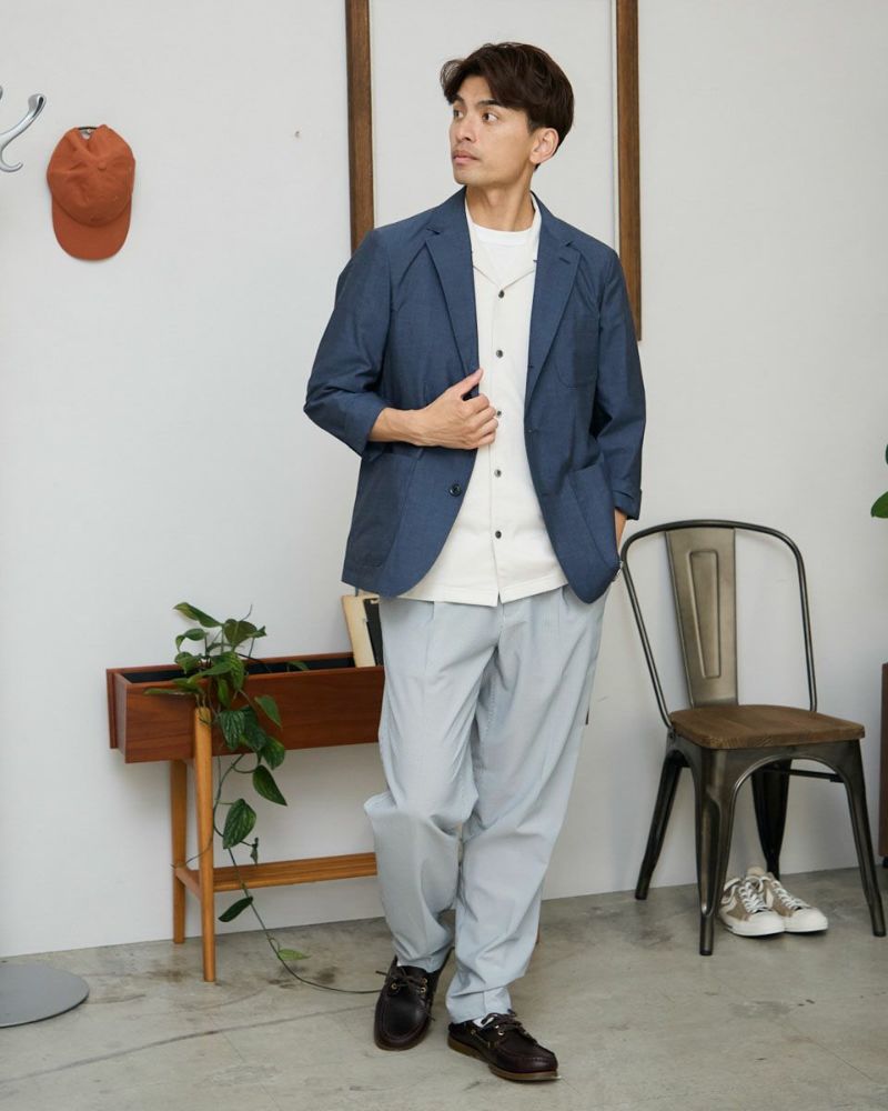 涼感のあるシャンブレー生地を使用したジャケットです。シャツ感覚で羽織れる軽さが特徴です。合わせるインナーによって様々なコーディネートをお楽しみいただけます。ご家庭でのお洗濯(手洗い)が可能で、長い期間ご着用いただけます。