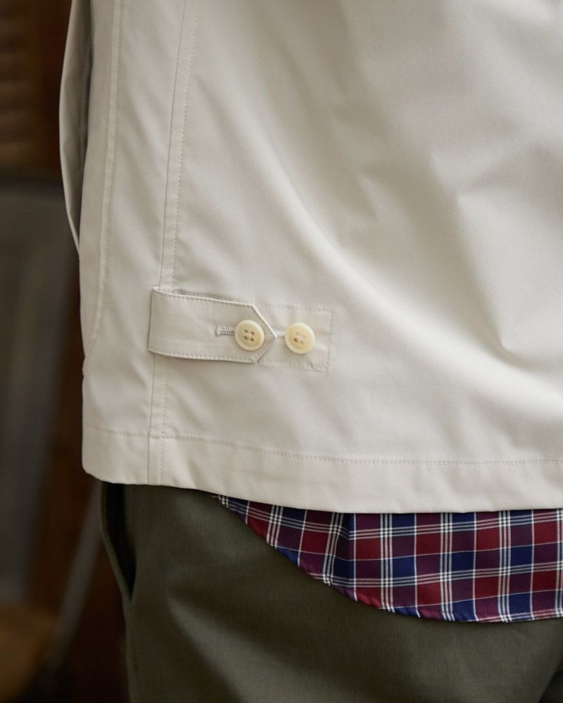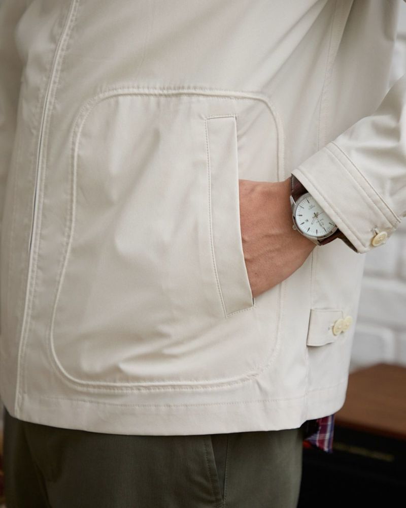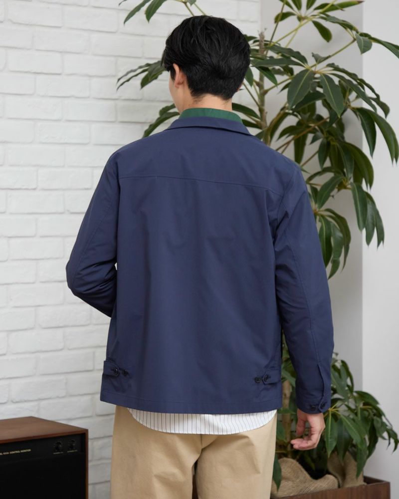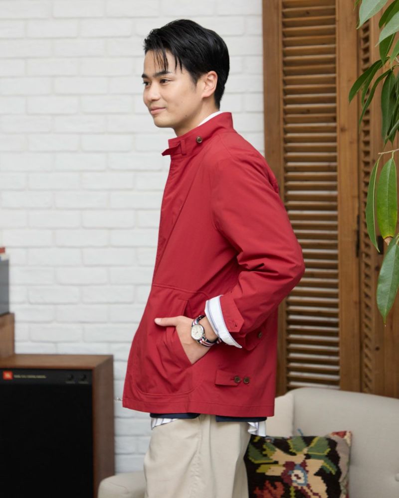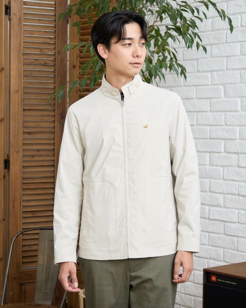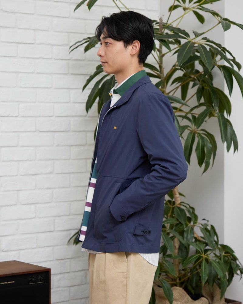 軽く羽織れるドライビングジャケットです。天然素材のような風合いのポリエステルタフタ素材を使用しています。ご家庭でのお洗濯(手洗い)が可能で、お手入れのしやすさがポイントです。合わせるボトムスはデニムがオススメです。