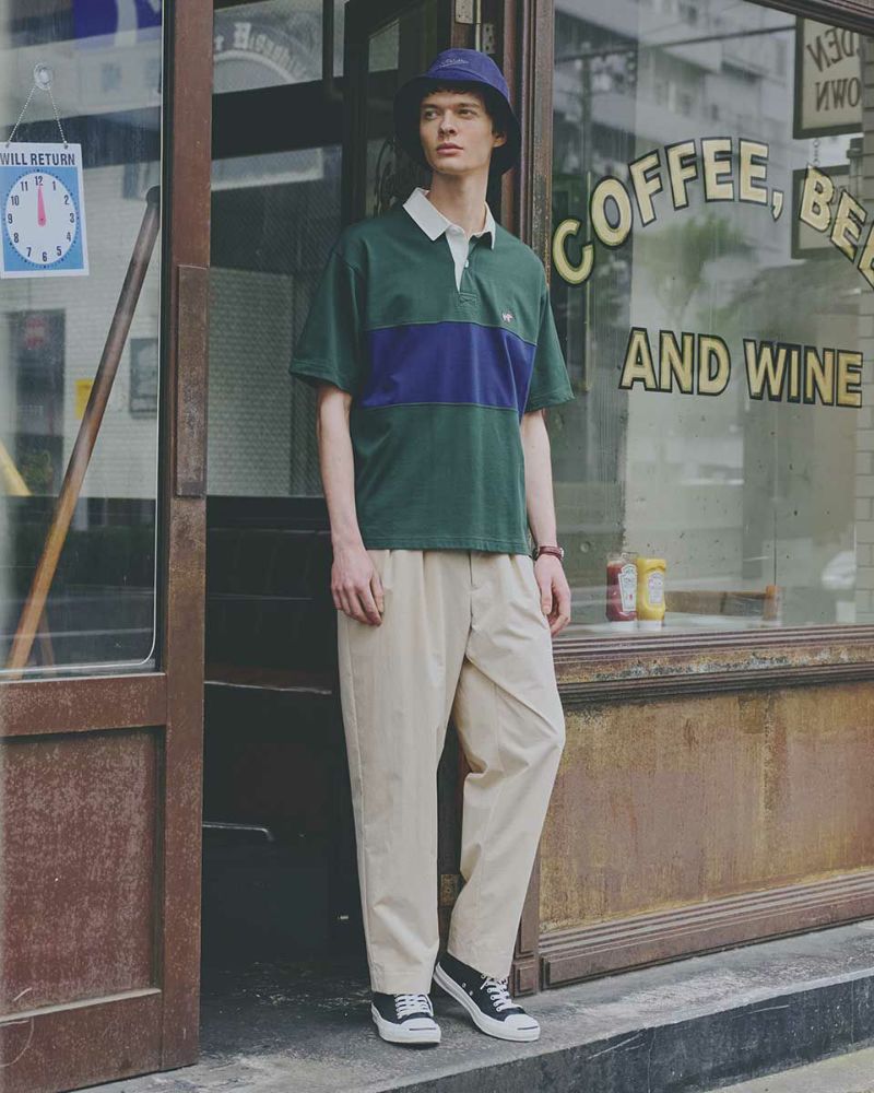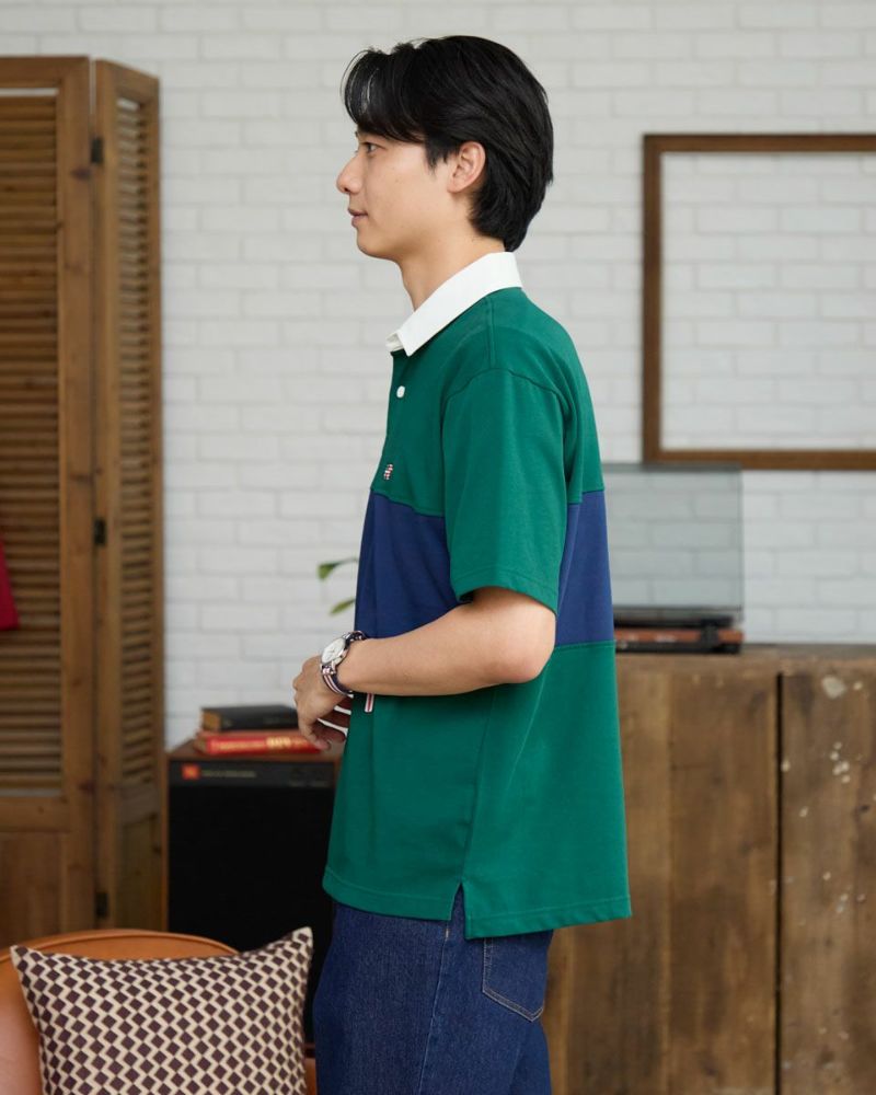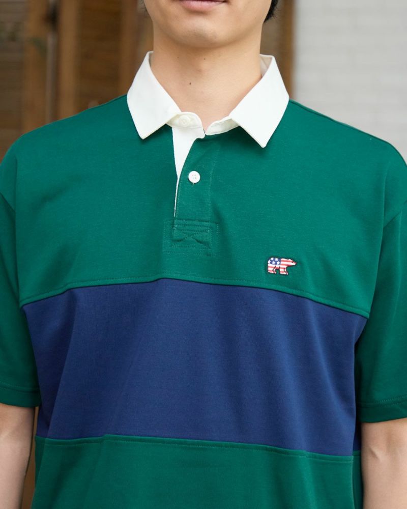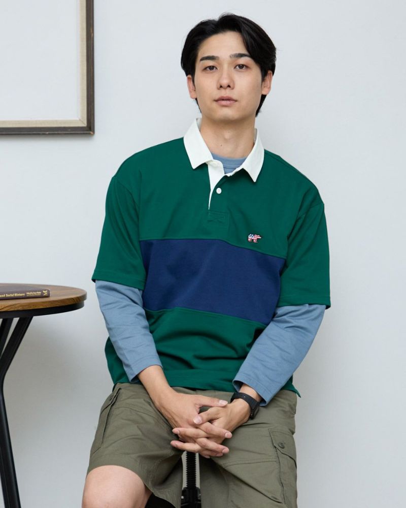 アメリカの星条旗をモチーフにしたクマ刺繍入りのラガーシャツです。カラーブロックデザインでスポーティな印象に仕上げました。デニムやカーゴパンツと合わせたアメカジスタイルから、ワイドパンツと組み合わせたトレンド感のあるコーディネートも楽しめます。 モデル身長: 186・180 cm 着用サイズ: L サイズ Golden Bear Men's カットソー (Men's) 【着用アイテム】314R7701 カーゴハーフパンツ 314R7740 イージーパンツ 314R8702 デニム