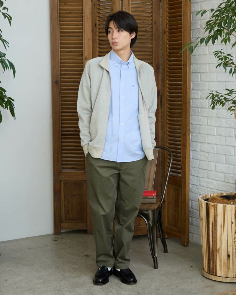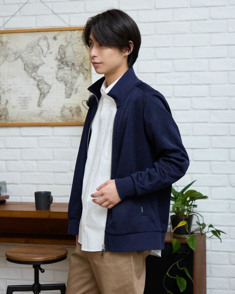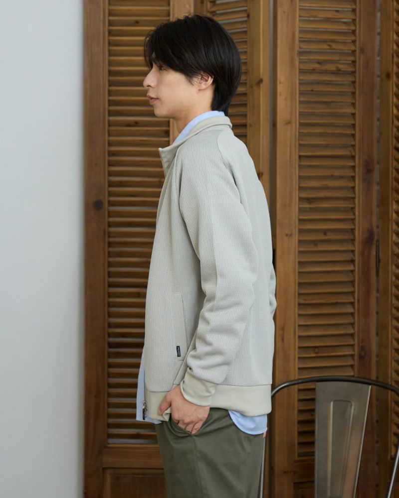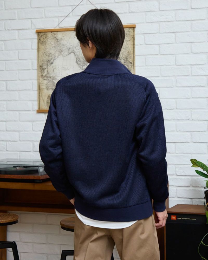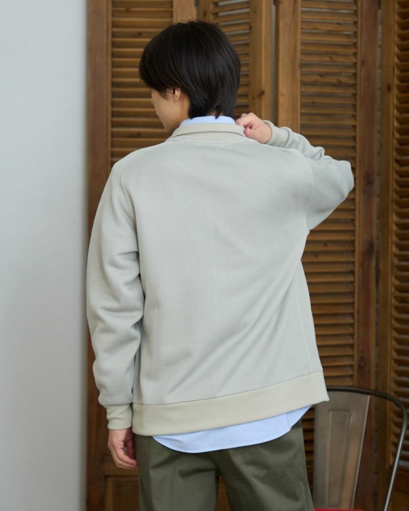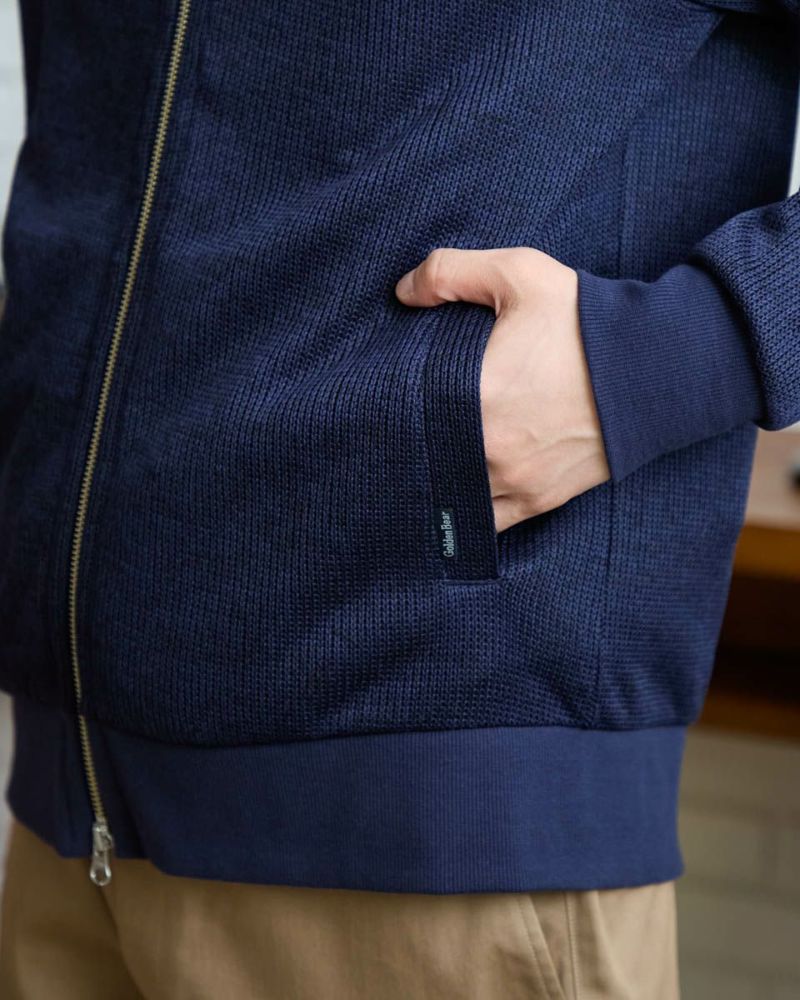 二重編みでニットのよう な表情をカットソー素材で表現したZIPブルゾン です。 人気のドライバーズニッ トをモチーフにした使い 勝手のよさが魅力です。 ニット素材よりも軽く、お 手入れがし易いのが特徴です。 モデル身長: 180 cm 着用サイズ: L サイズ Golden Bear Men's カットソー (Men's) 同デザイン大きい(3Lサイズ)はこちら 【着用アイテム】314RC230 オックスシャツ 314RC704 イージーパンツ