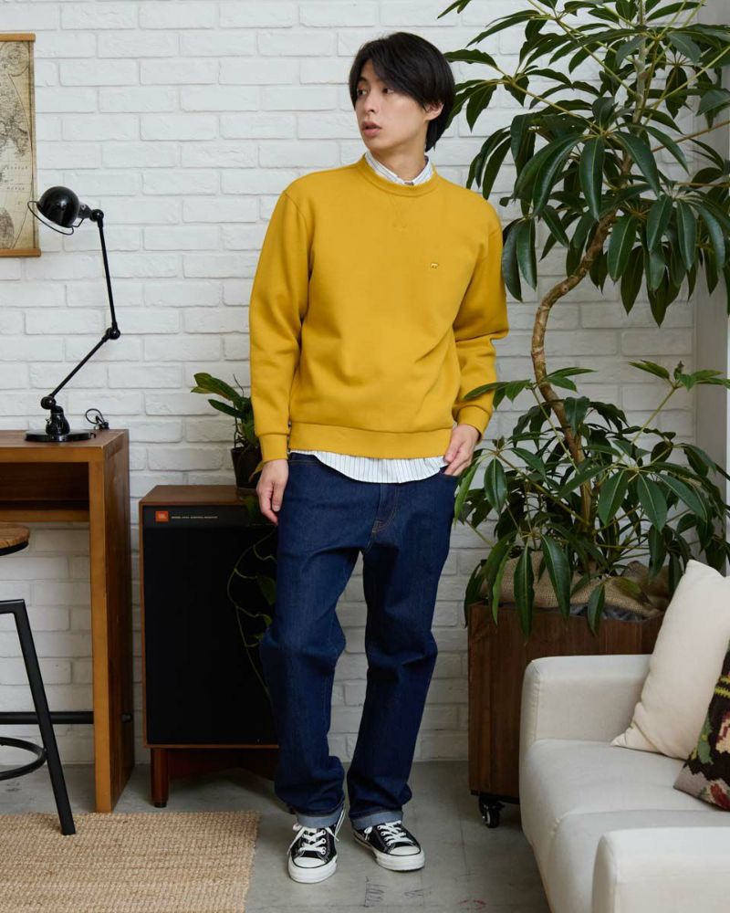 この秋一押しのクルーネックスウェットです。スウェットは少し重いんだよな・・・なんて感じたこと、ありませんか?このスウェットLサイズは約345グラムで、とても軽く仕上げました!段ボールニット素材は生地に空気を含んでいますので、軽さと柔らかさを両立します。そしてシワになりにくく、お洗濯後のお手入れも簡単です。レギュラーシルエットで着やすく、快適な着心地をお約束します!上品かつ上質な生地でちょっとしたお出かけからご旅行まで、幅広くお使いいただけます。私たちGOLDEN BEARの自信作を是非お試しください! モデル身長: 180 cm 着用サイズ: L サイズ Golden Bear Men's カットソー (Men's) 同デザイン大きい(3L,4Lサイズ)はこちら 【着用アイテム】314RC204 ストライプシャツ 314R8702 デニム 314RC700 ワイドチノ 314RC704 イージーパンツ