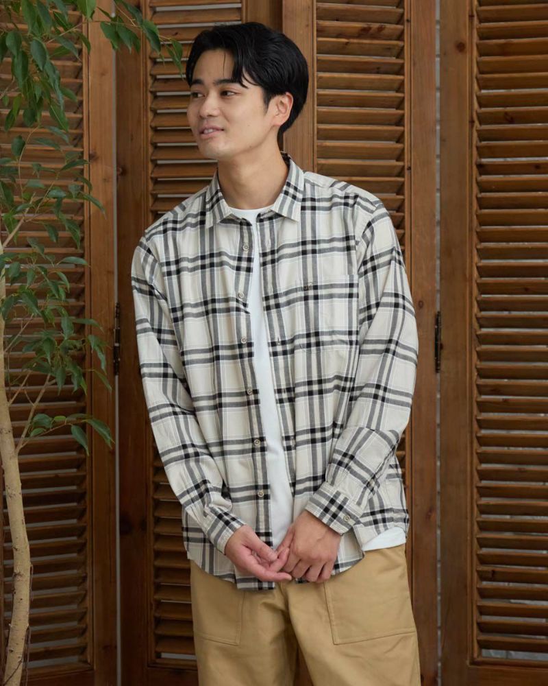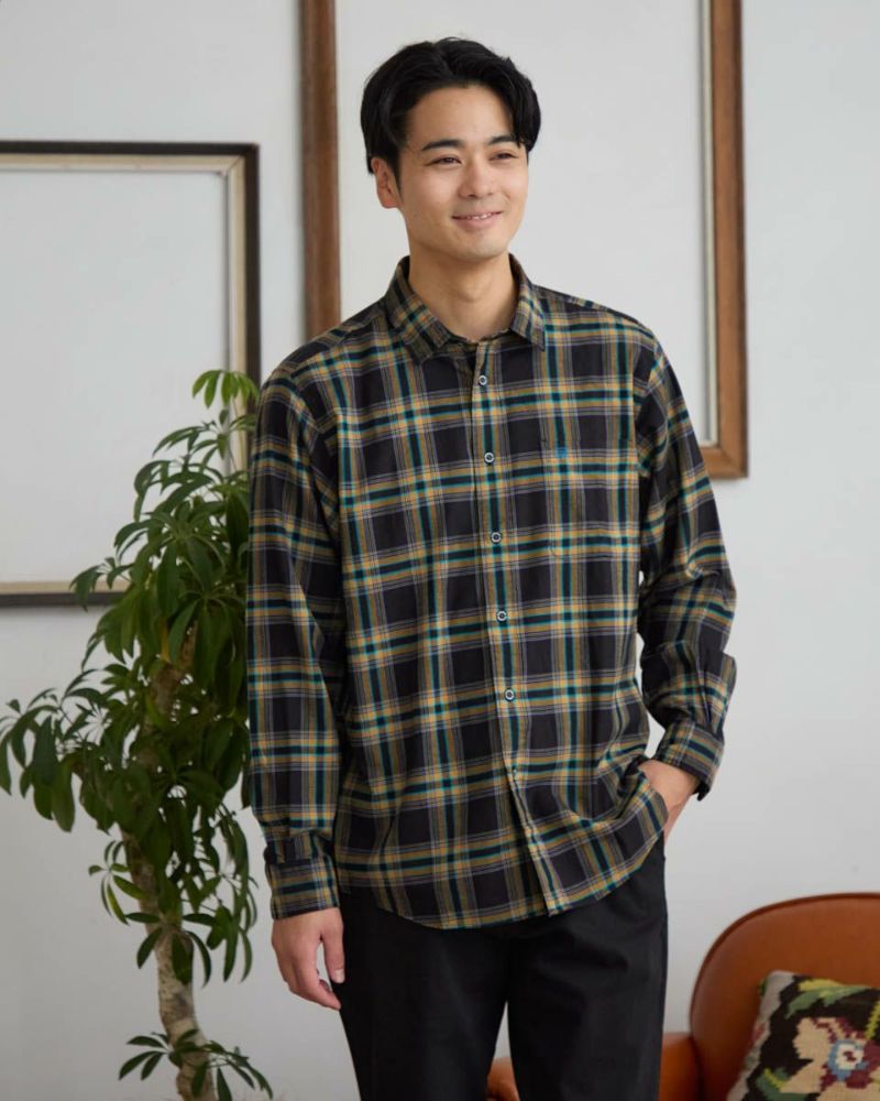 オーガニックコットン100%を甘く撚り合わせたチェックのレギュラー襟シャツです。両面に微起毛を施し、ふんわりとした柔らかな風合いに仕上げました。着心地のよさ、着回し力を兼ね備えた秋冬のワードローブに欠かせないシャツです。 モデル身長: 176・180 cm 着用サイズ: L サイズ Golden Bear Men's シャツ (Men's) レディースサイズはこちら 家族コーディネートアイテムはこちら