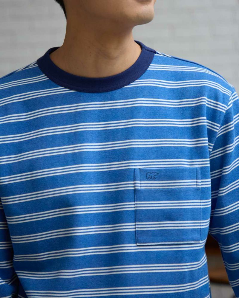 軽くて、柔らかいボーダー長袖Tシャツです。ライトダンボールニットに裏起毛を施すことで柔らかな風合いに仕上げました。濃色のアウターが増えてくる時期に、着こなしのポイントになる明るいカラーが魅力です。